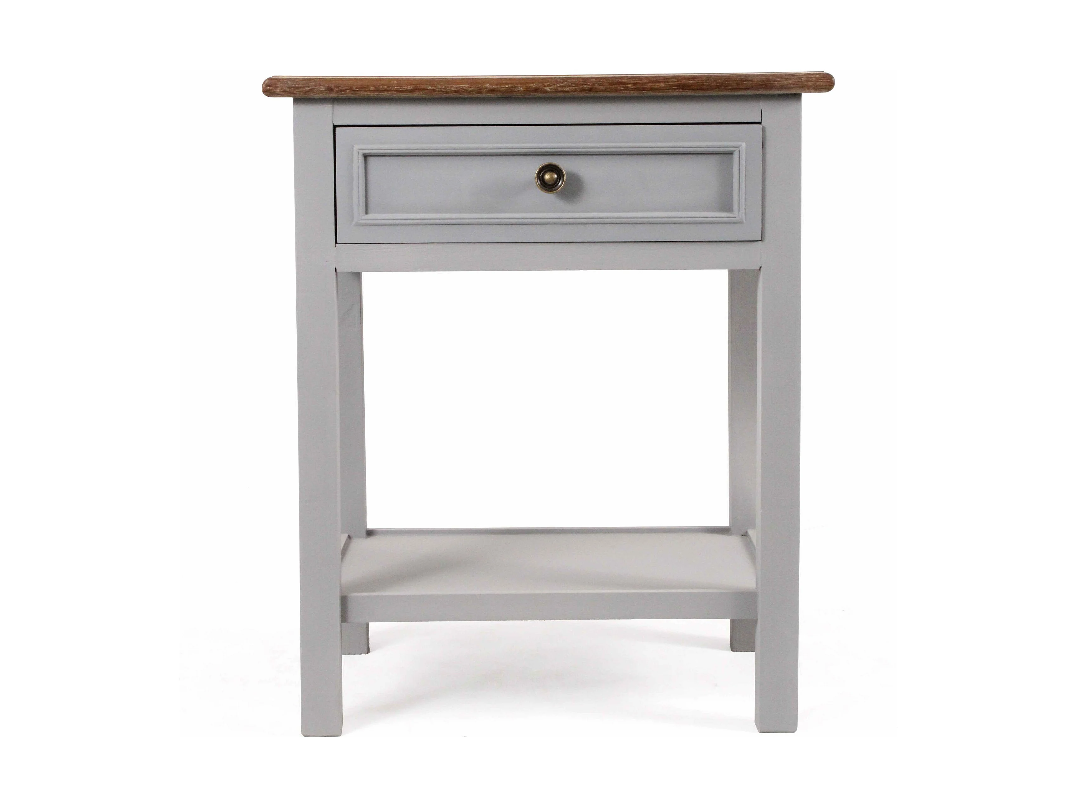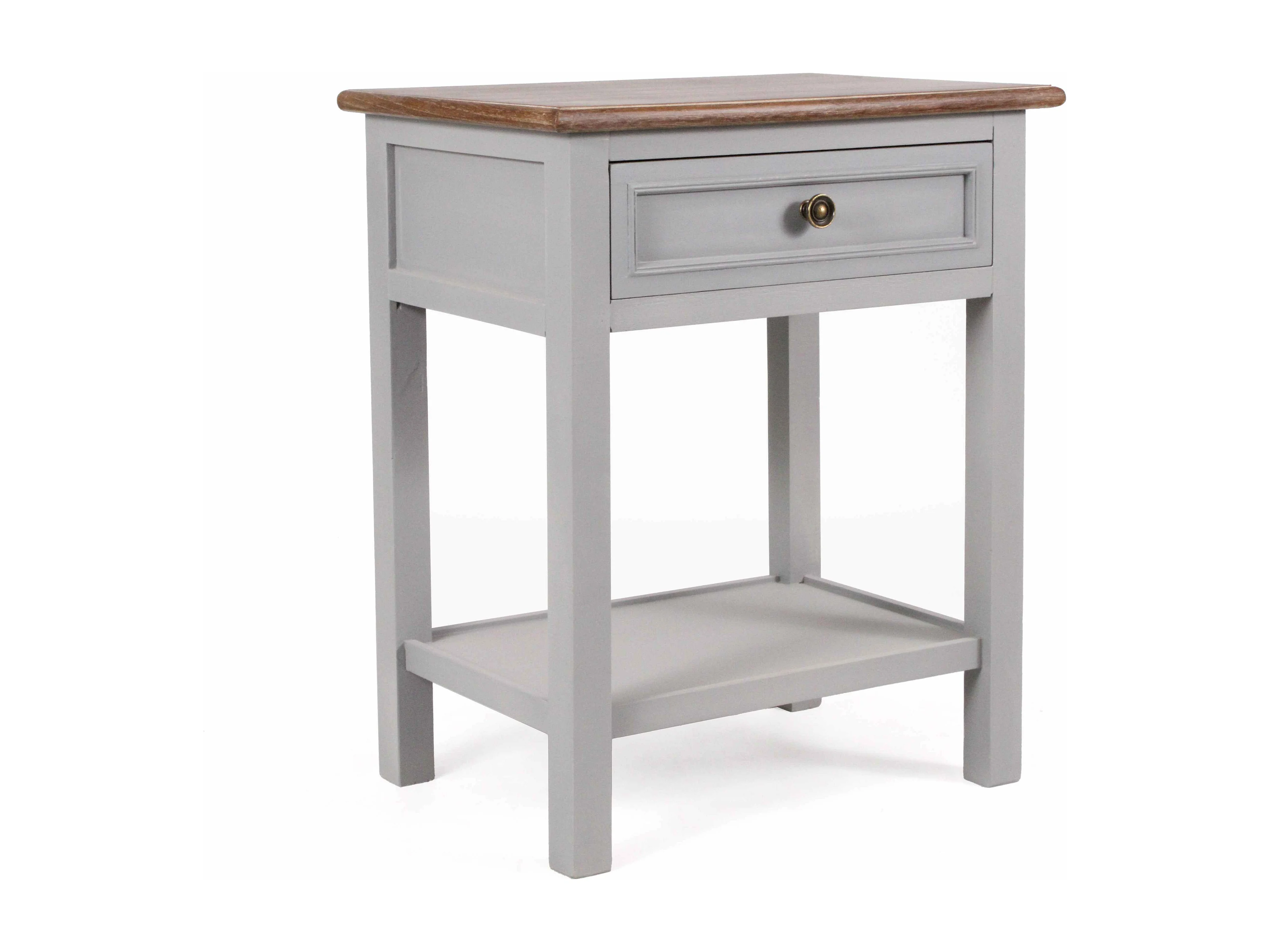 Comodino grigio chiaro 50x33x60 cm in legno massello di mango