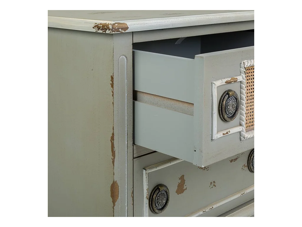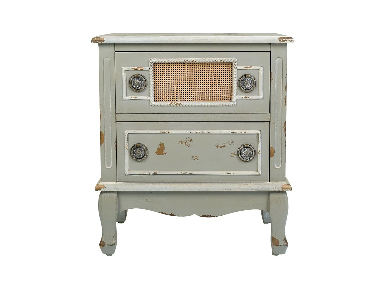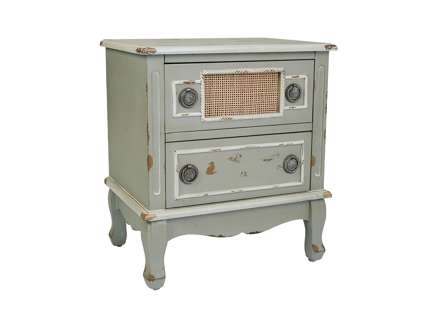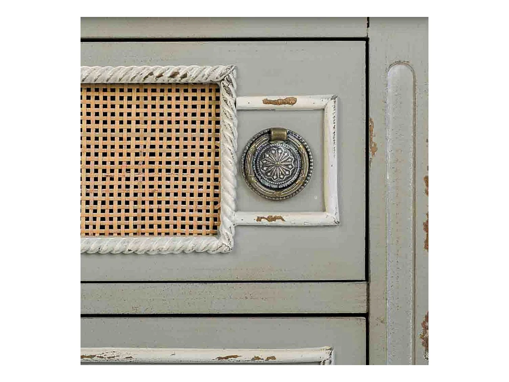 Comodino in legno e rattan di bambù, dimensioni 50x36x56,5 cm.