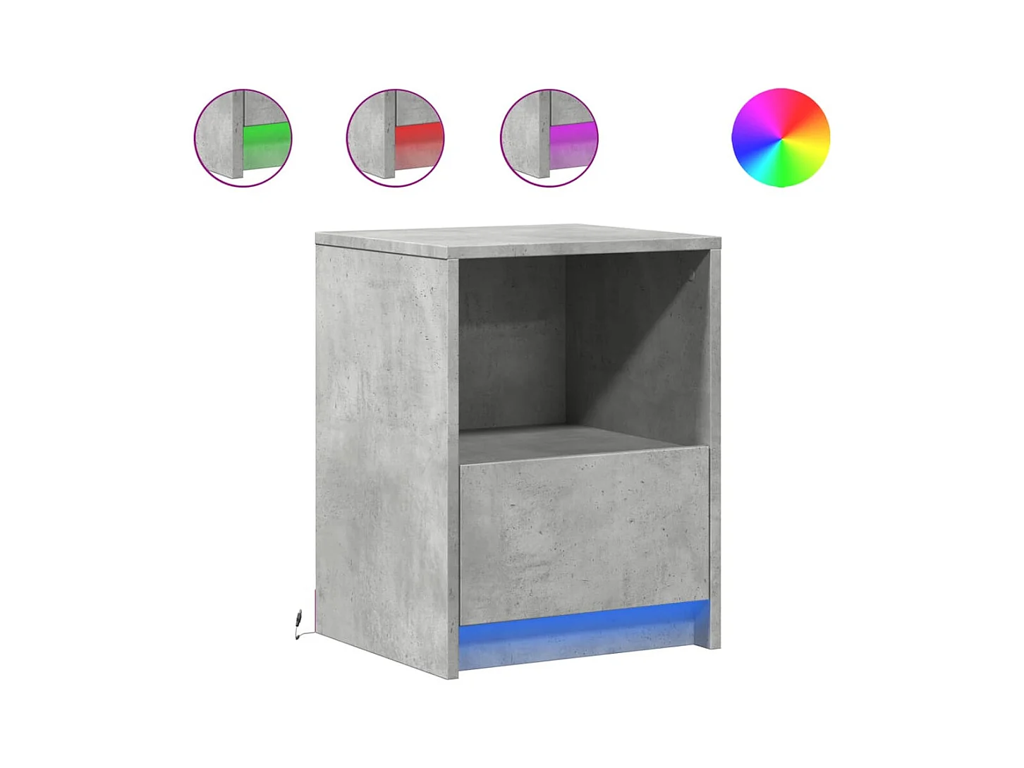 Comodino con luci LED, grigio cemento, 38x34x50 cm