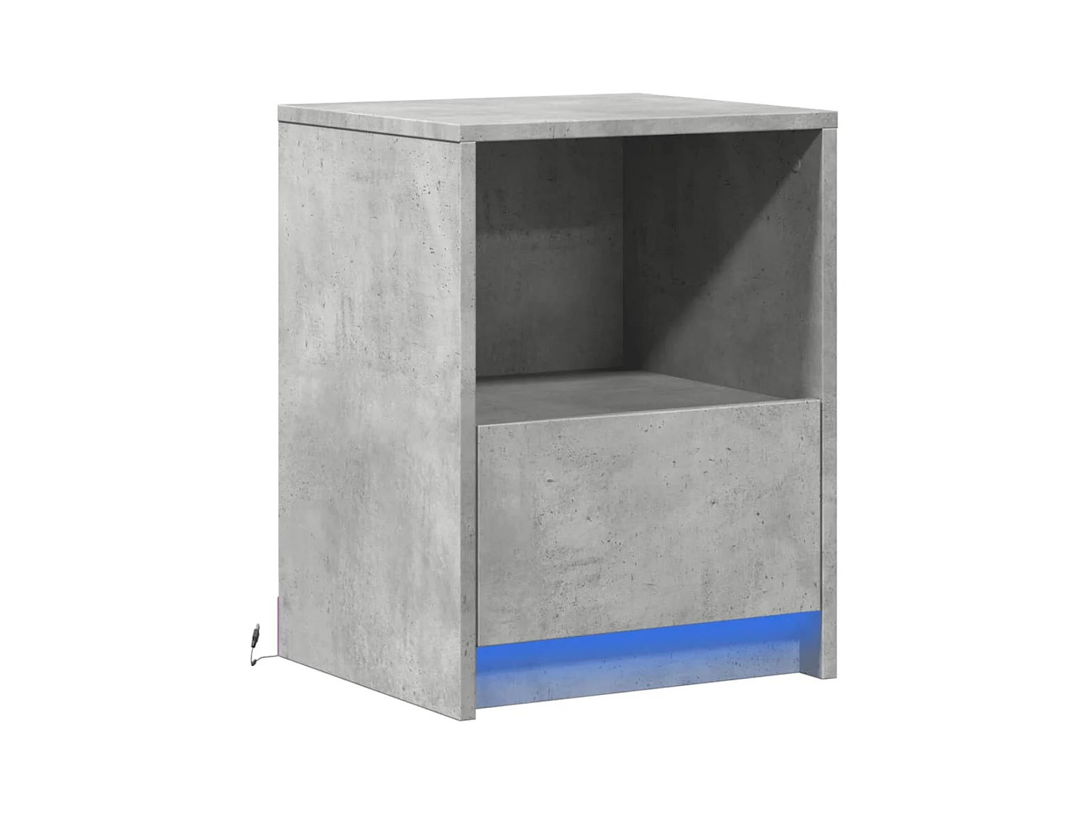 Comodino in legno ingegnerizzato grigio cemento e luci a LED