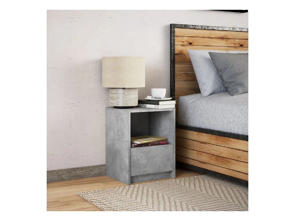 Comodino grigio cemento 40x40x50 cm in legno ingegnerizzato