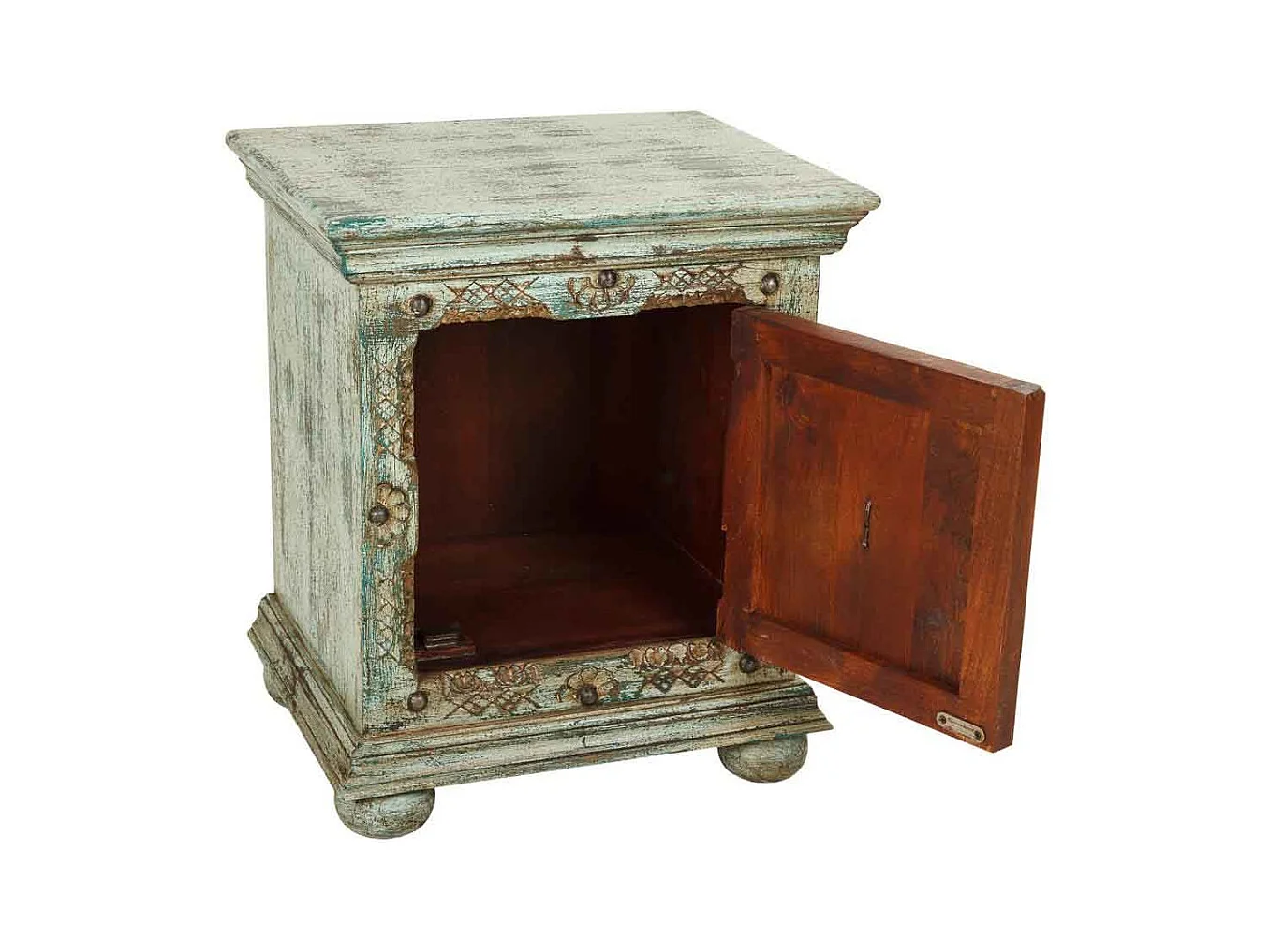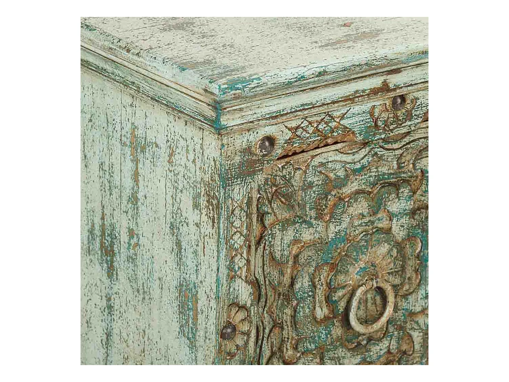 Comodino in legno intagliato verde 50x40x59