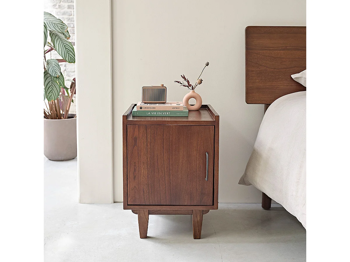 Comodino 1 cassetto in legno massello in tono noce 40x15x25cm - INGRID - DECOWOOD