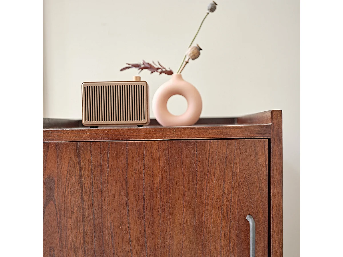 Comodino in legno con 1 cassetto e 1 porta marrone 41,5x35x63