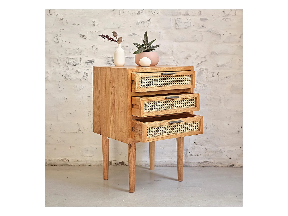 Comodino 1 cassetto in legno massello in tono naturale 40x60cm - MARTINA - DECOWOOD