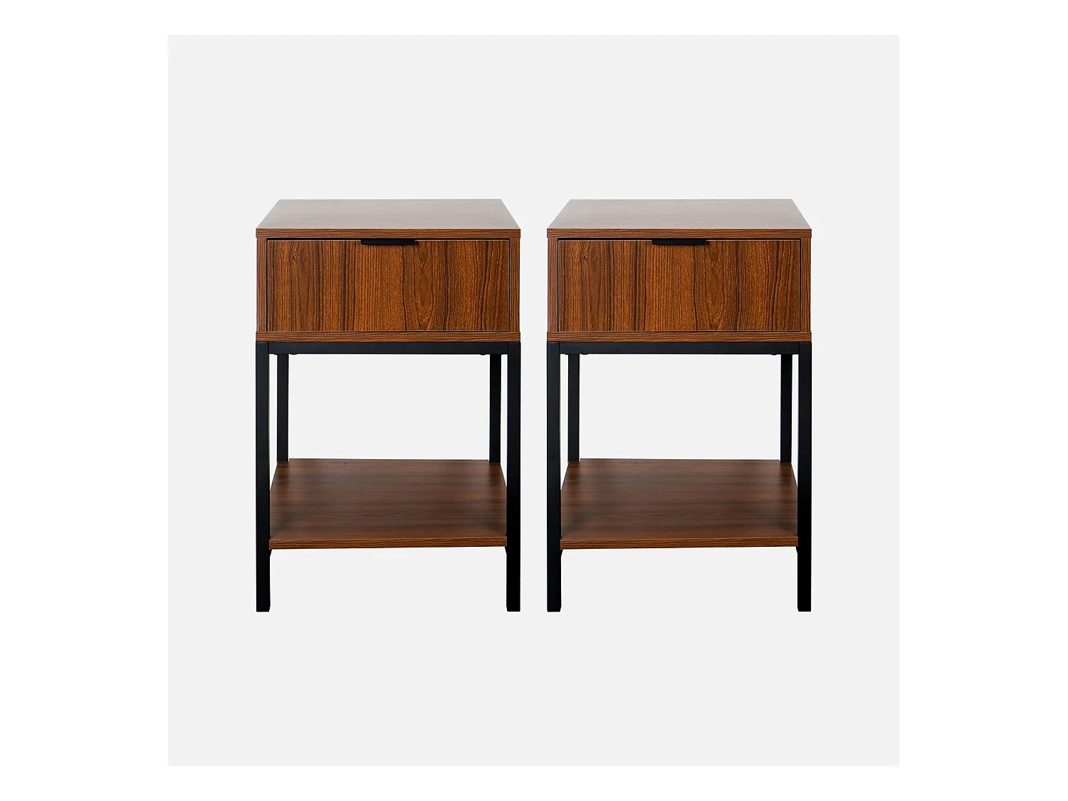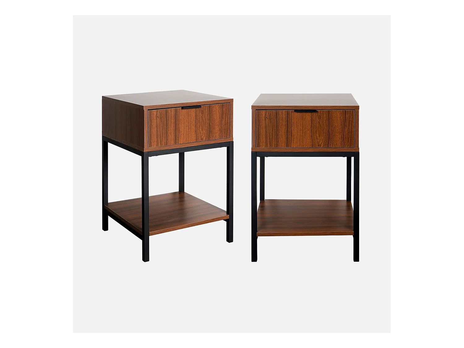 Set di 2 comodini in metallo noce e nero, 1 cassetto, marrone
