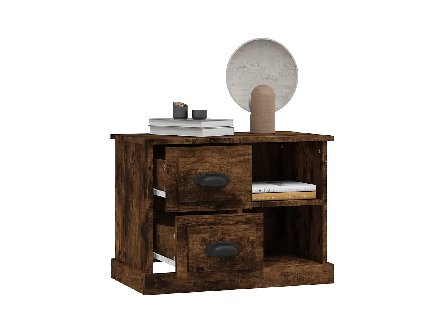 Comodino in rovere affumicato 60x31x60 cm in legno ingegnerizzato e metallo