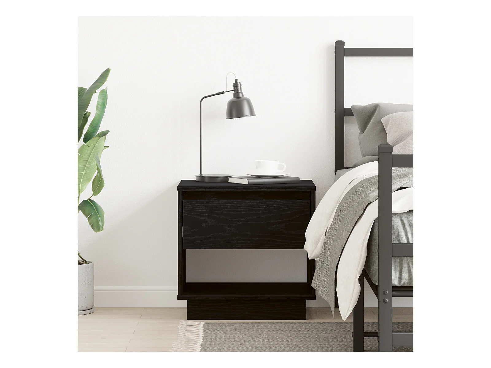 Comodino nero 45x34x44 cm in legno ingegnerizzato