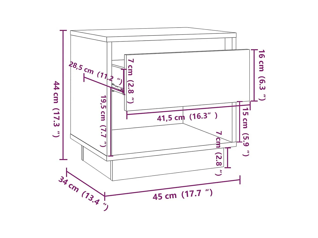 Comodino in rovere Sonoma 45x34x44 cm in legno ingegnerizzato