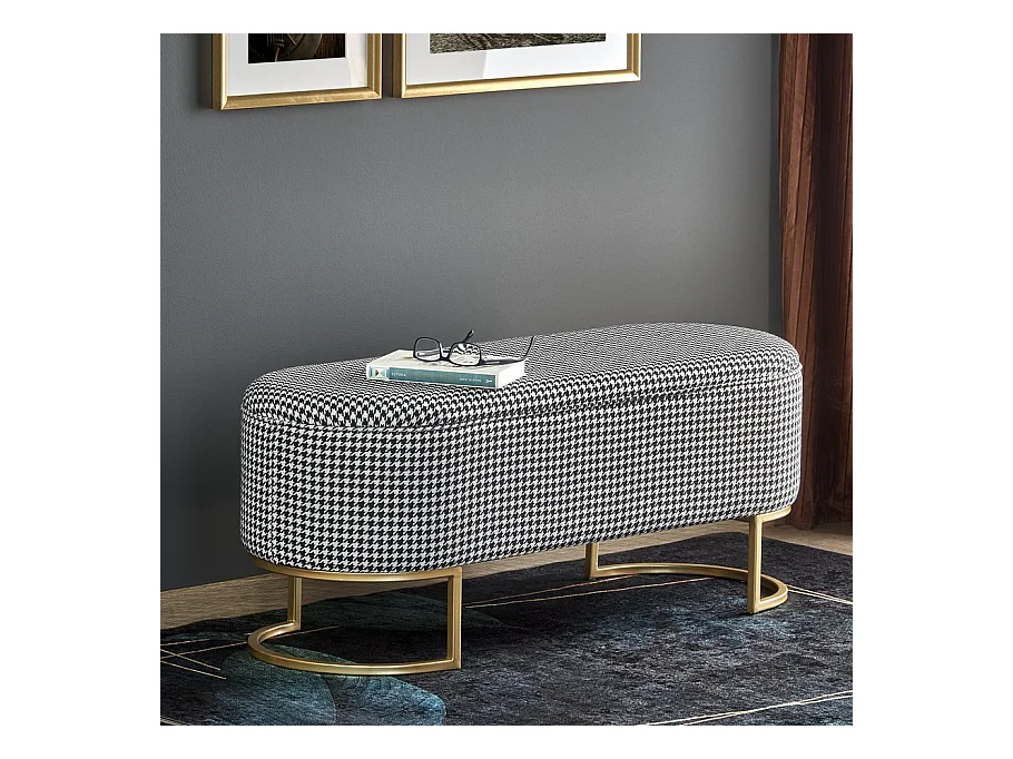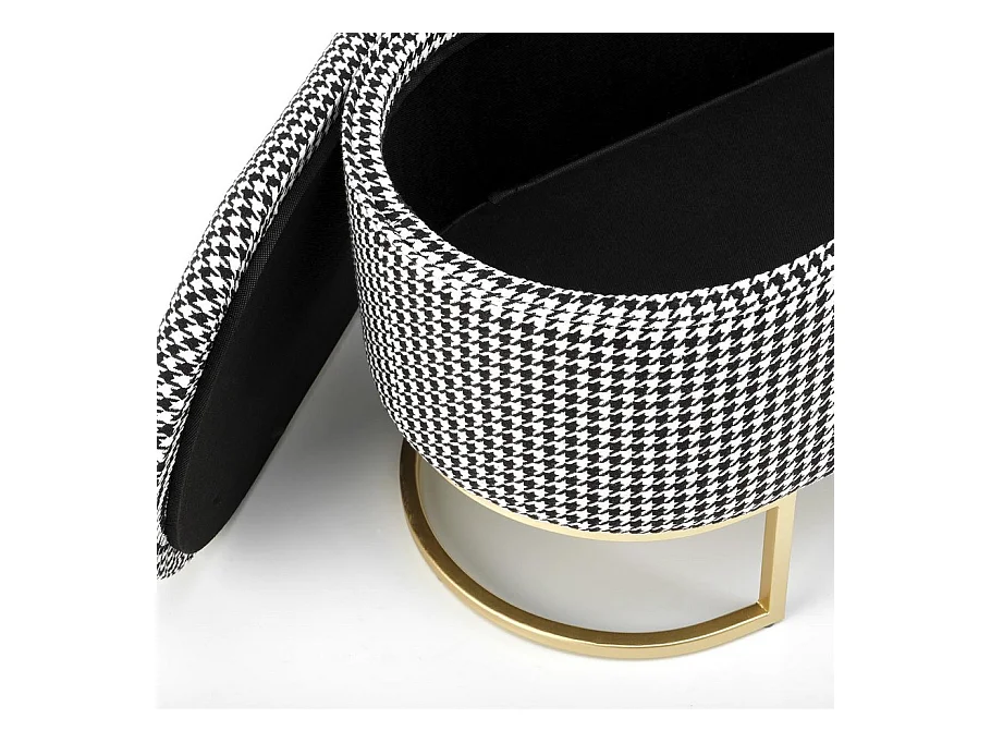 Comodino in tessuto pied-de-poule con scatola e piedini dorati Lys