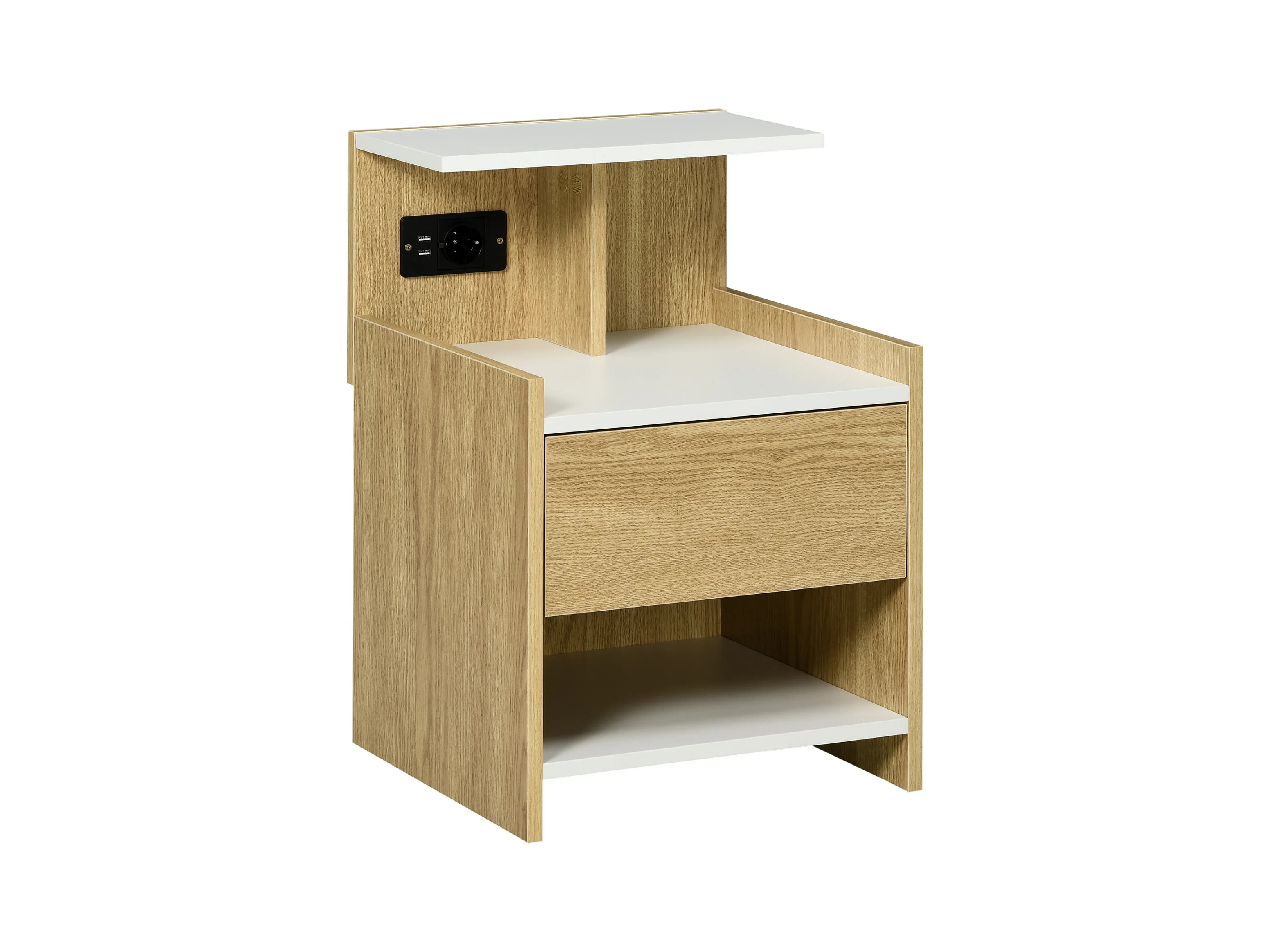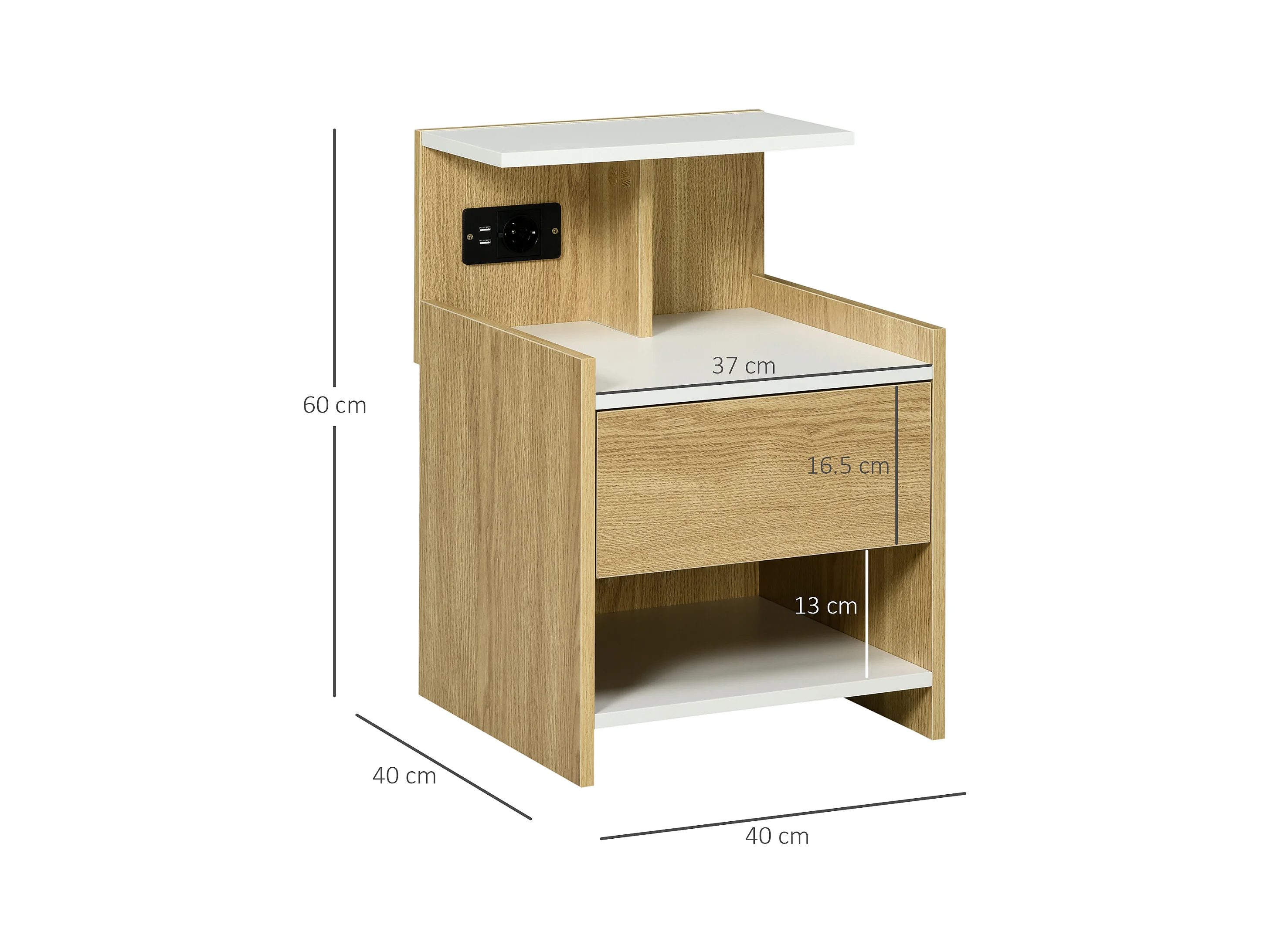 Comodino in truciolato con cassetto 2 prese e 2 porte usb