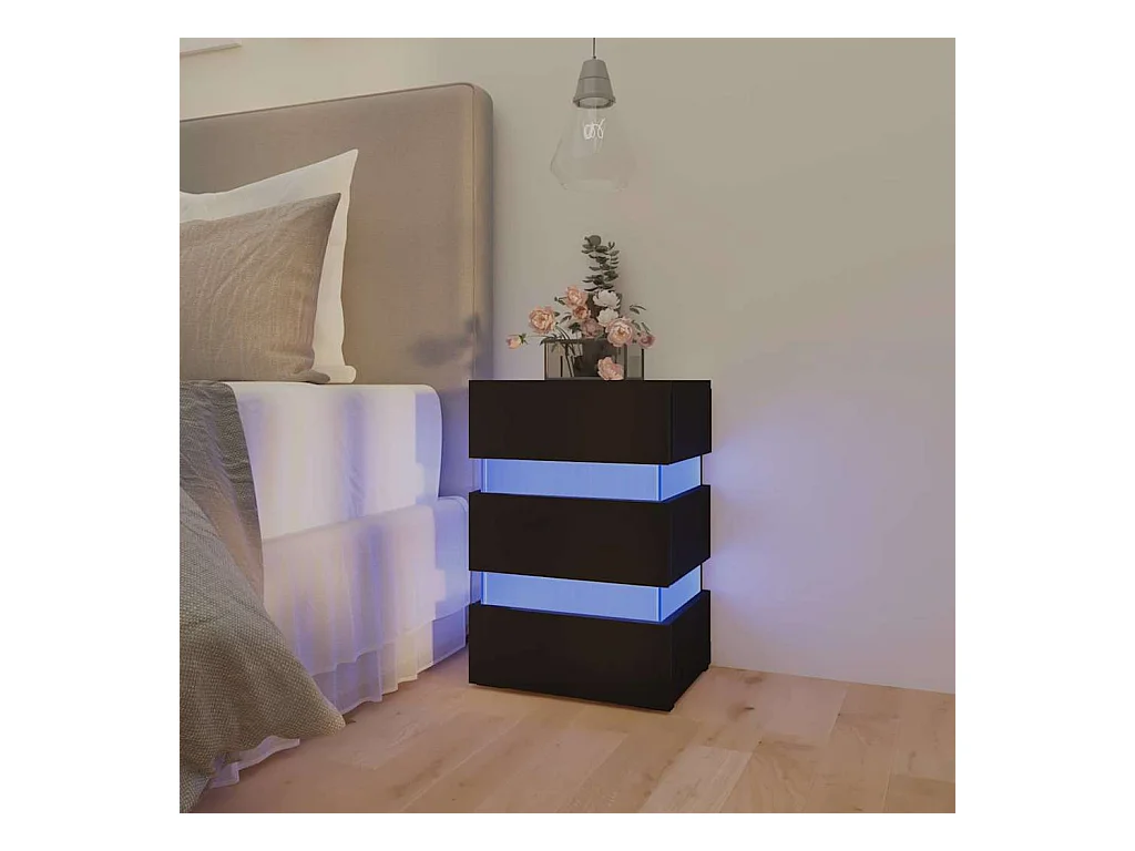 Comodino LED Nero 45x35x67 cm Legno ingegnerizzato