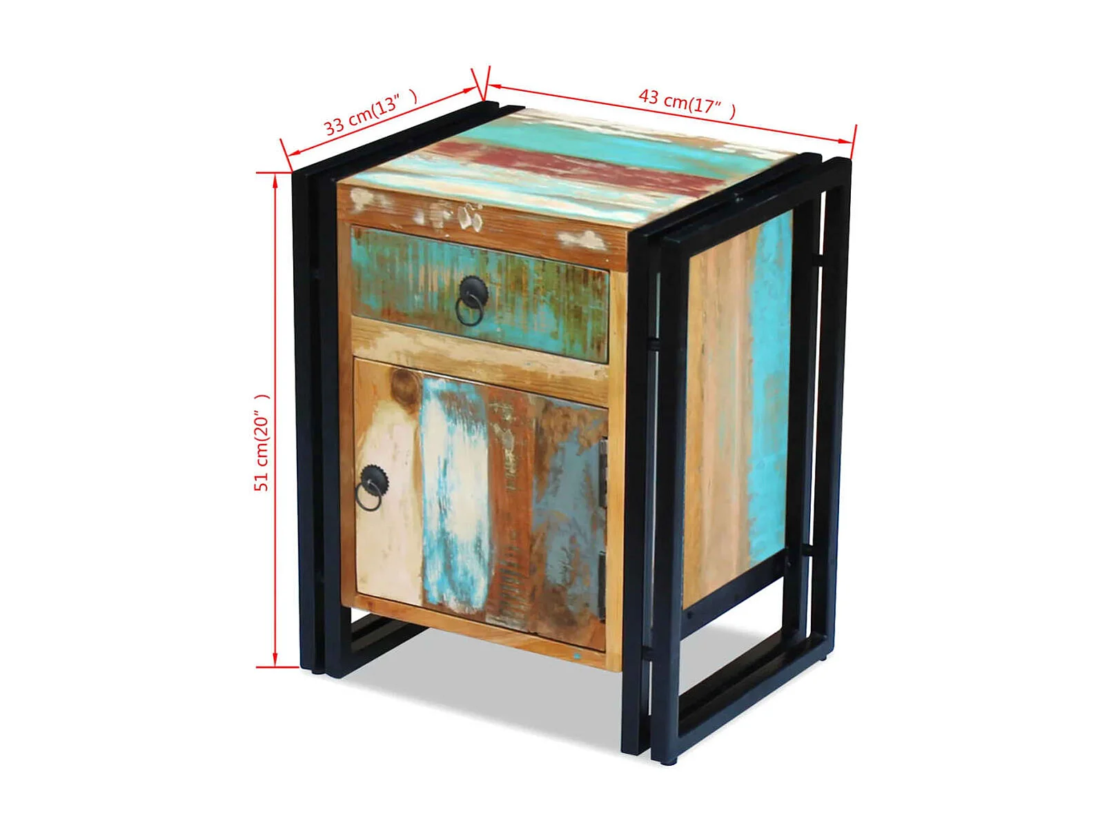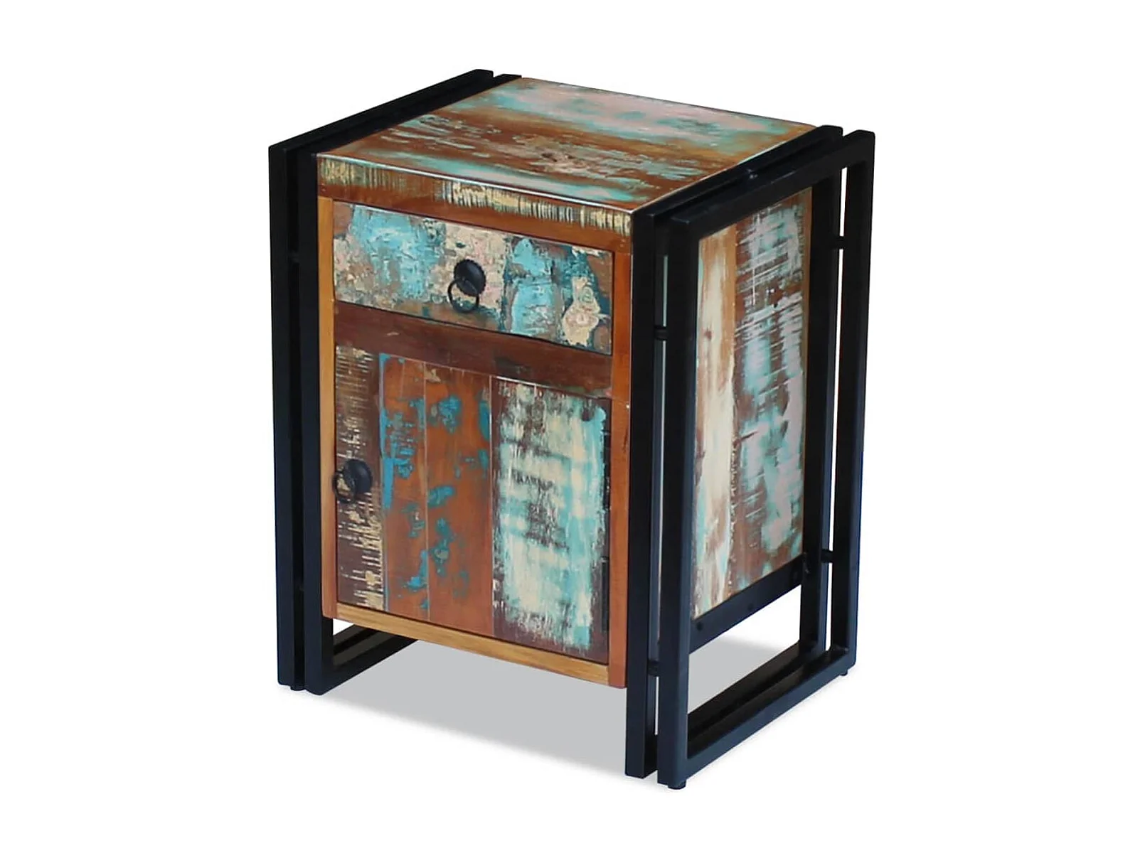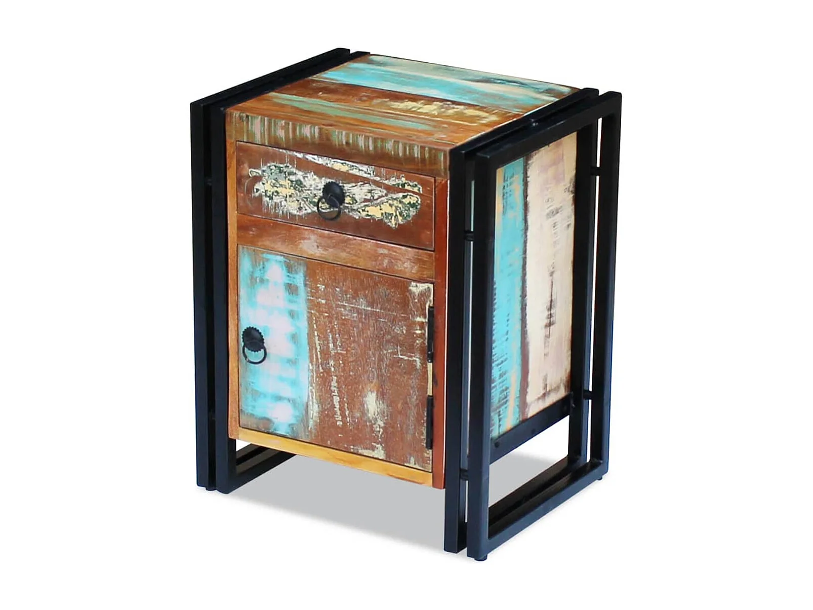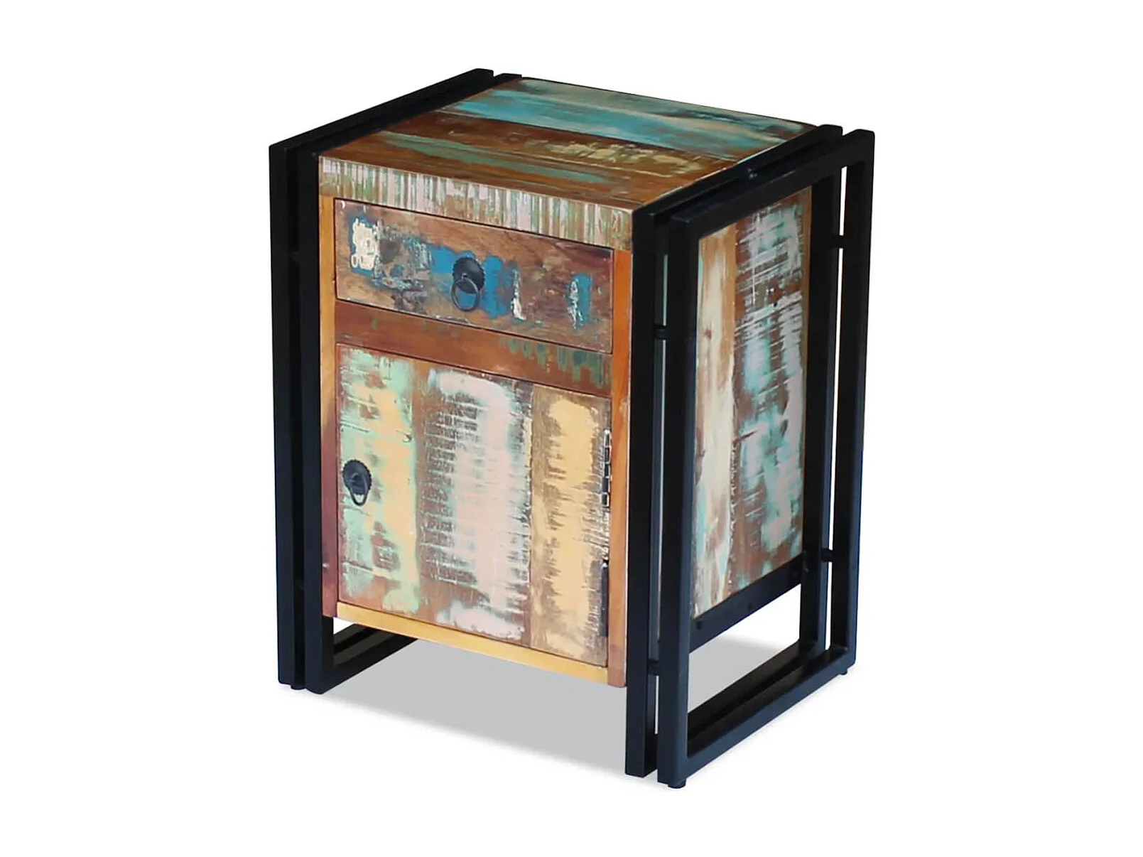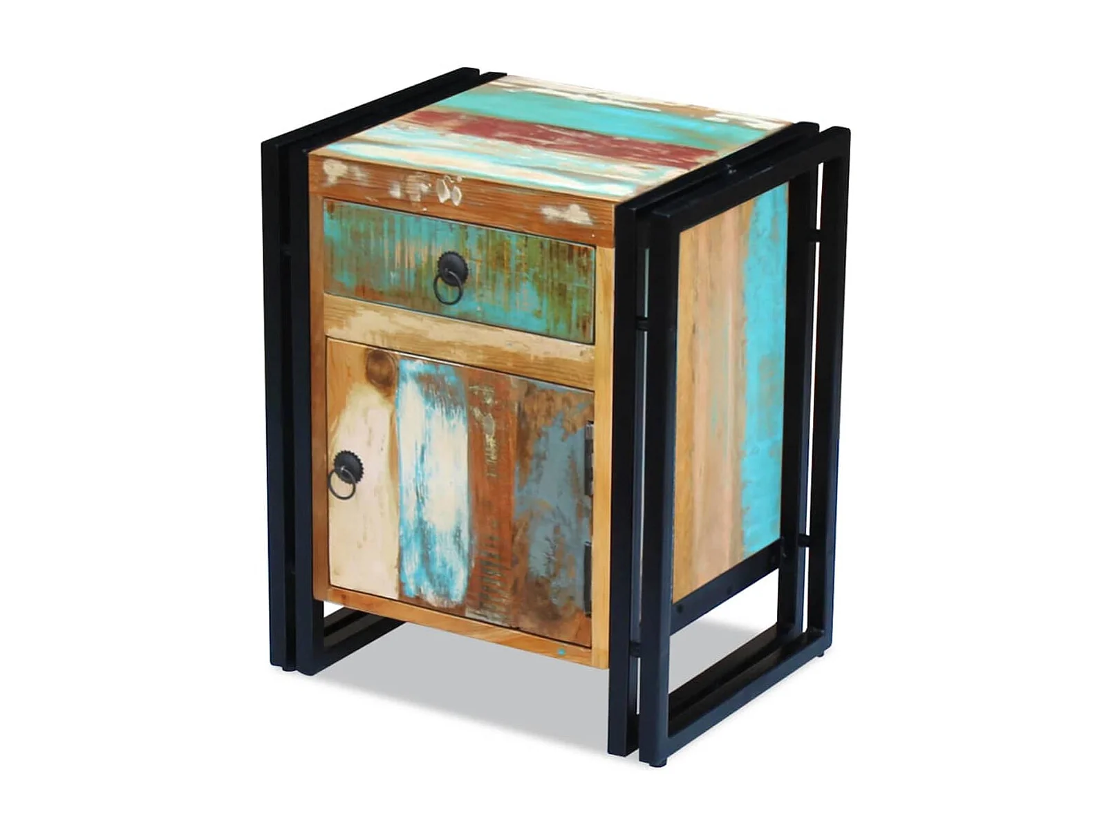 Comodino multicolore 50x27x50 cm in legno di recupero