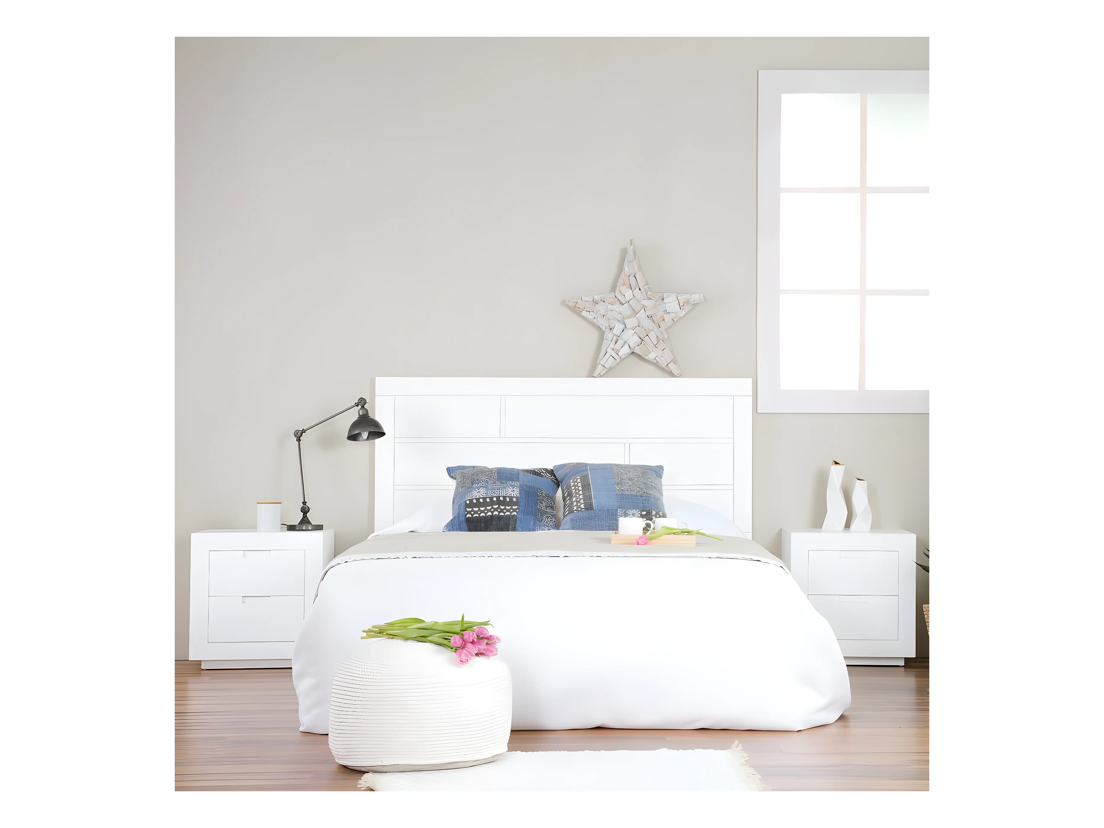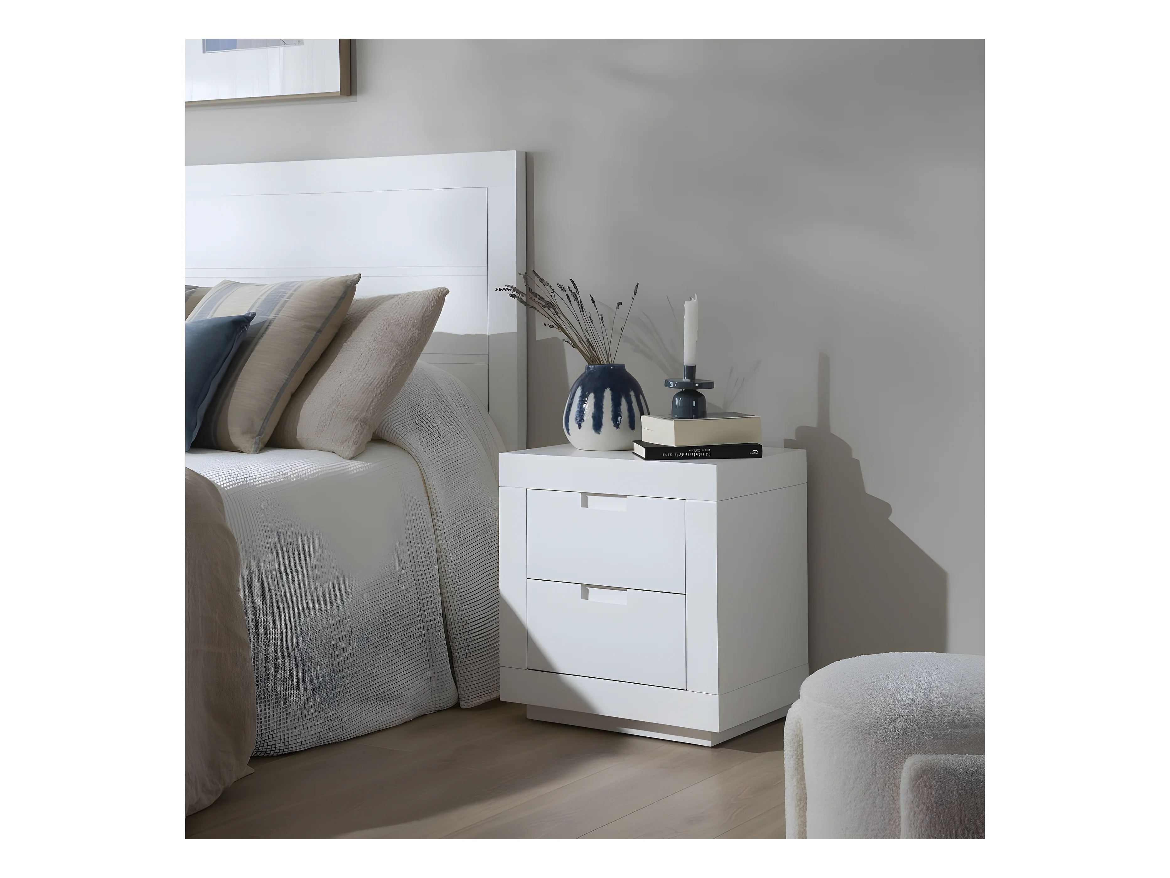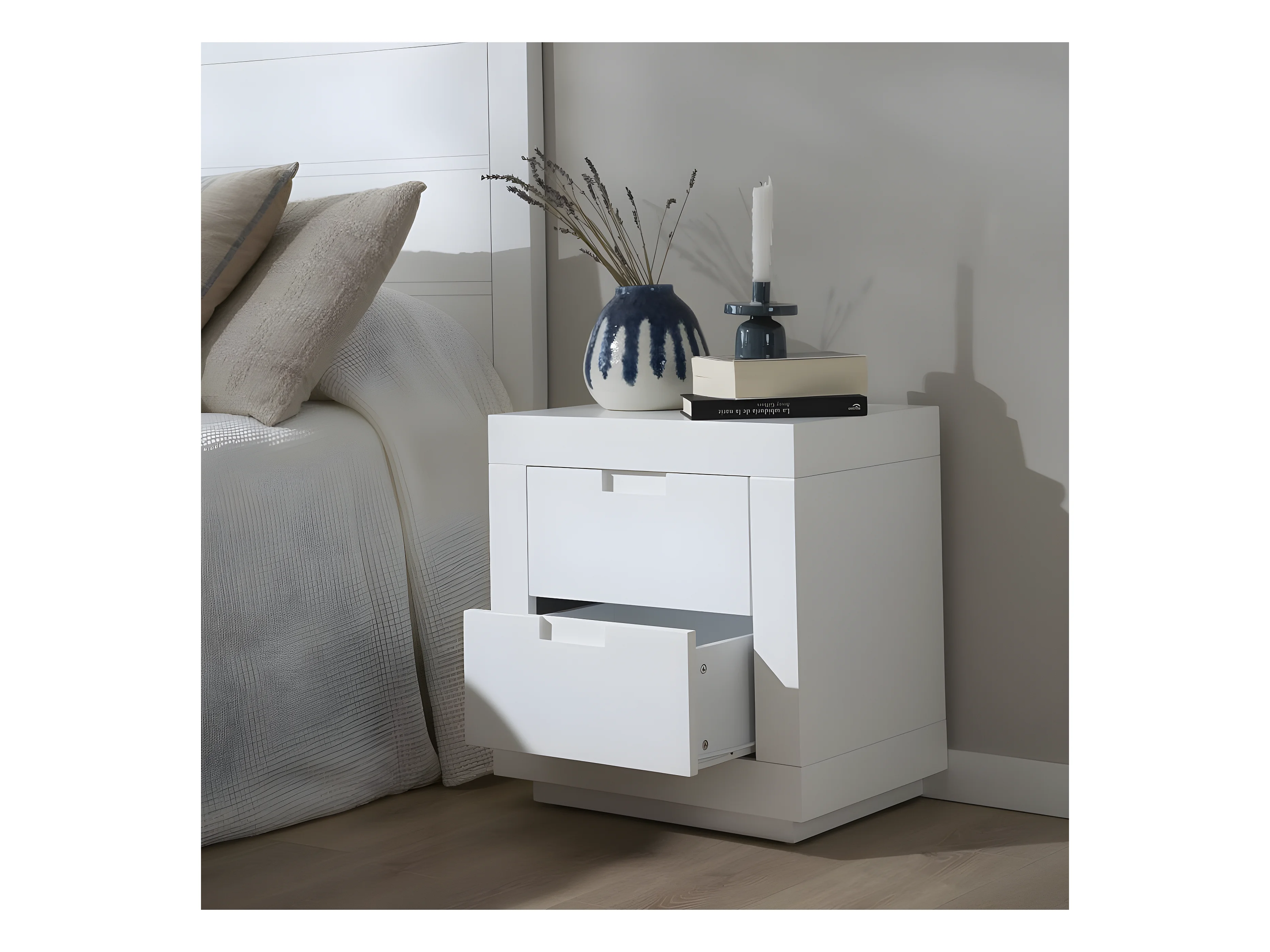 Comodino 1 cassetto in legno massello in tono bianco 40x45cm - LINEN - DECOWOOD