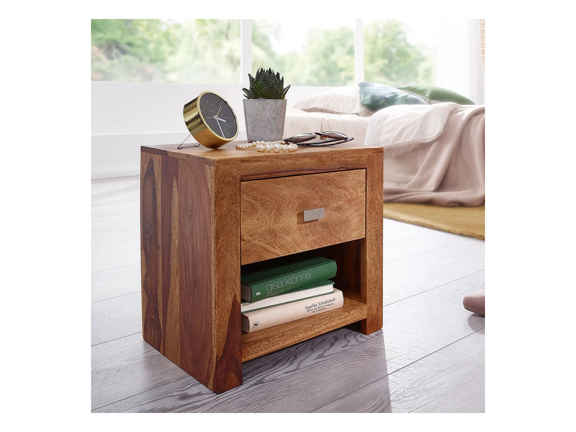 Comodino Letto 45x45x50cm Legno Massello Sheesham Consolle Notturna