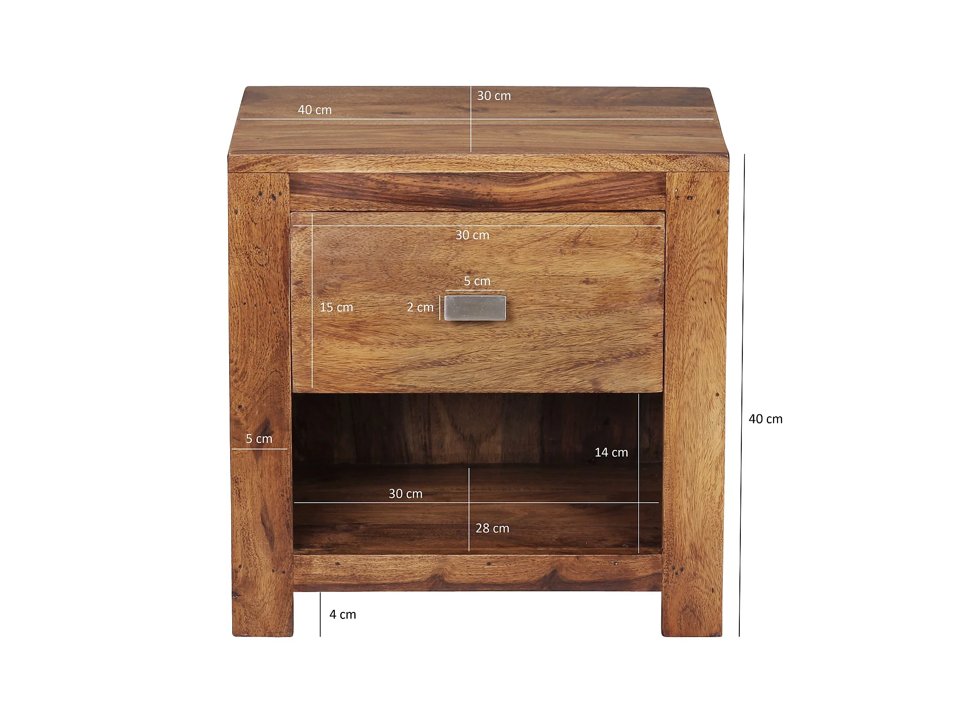 Comodino Letto 40x40x30cm Legno Massello Sheesham Consolle Notturna