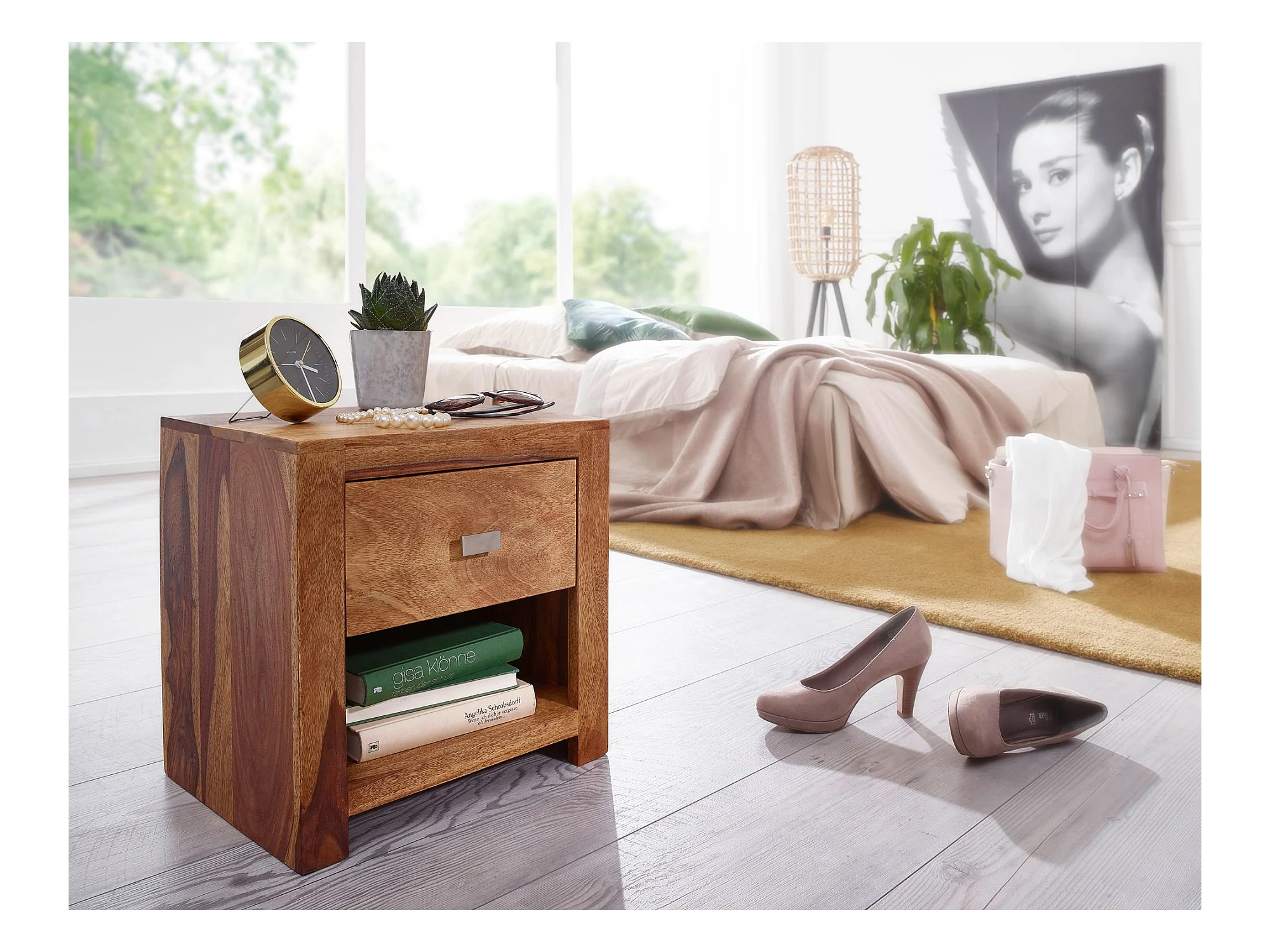Comodino Letto 47x66x36cm Legno Massello Consolle Notturna Sheesham