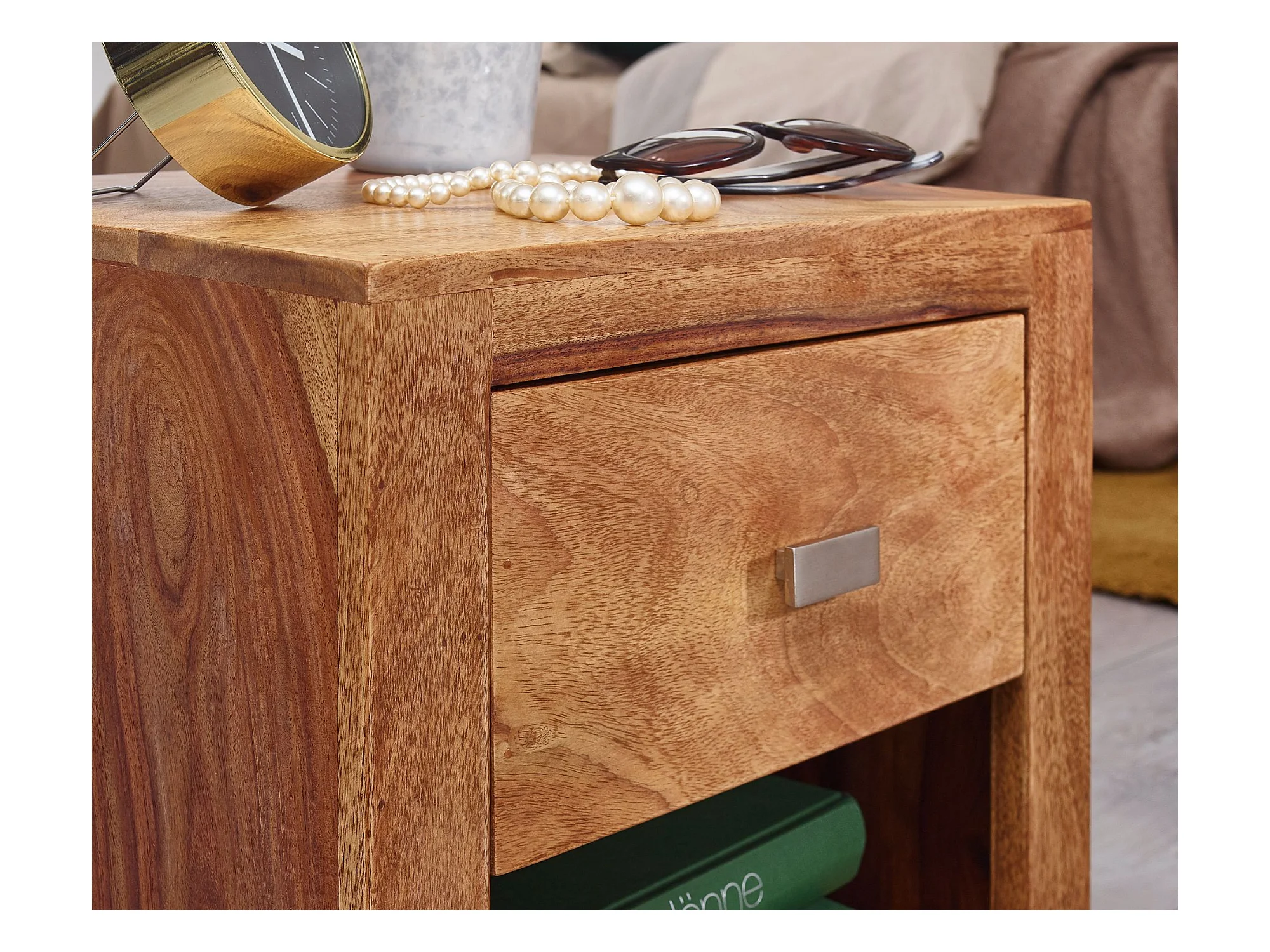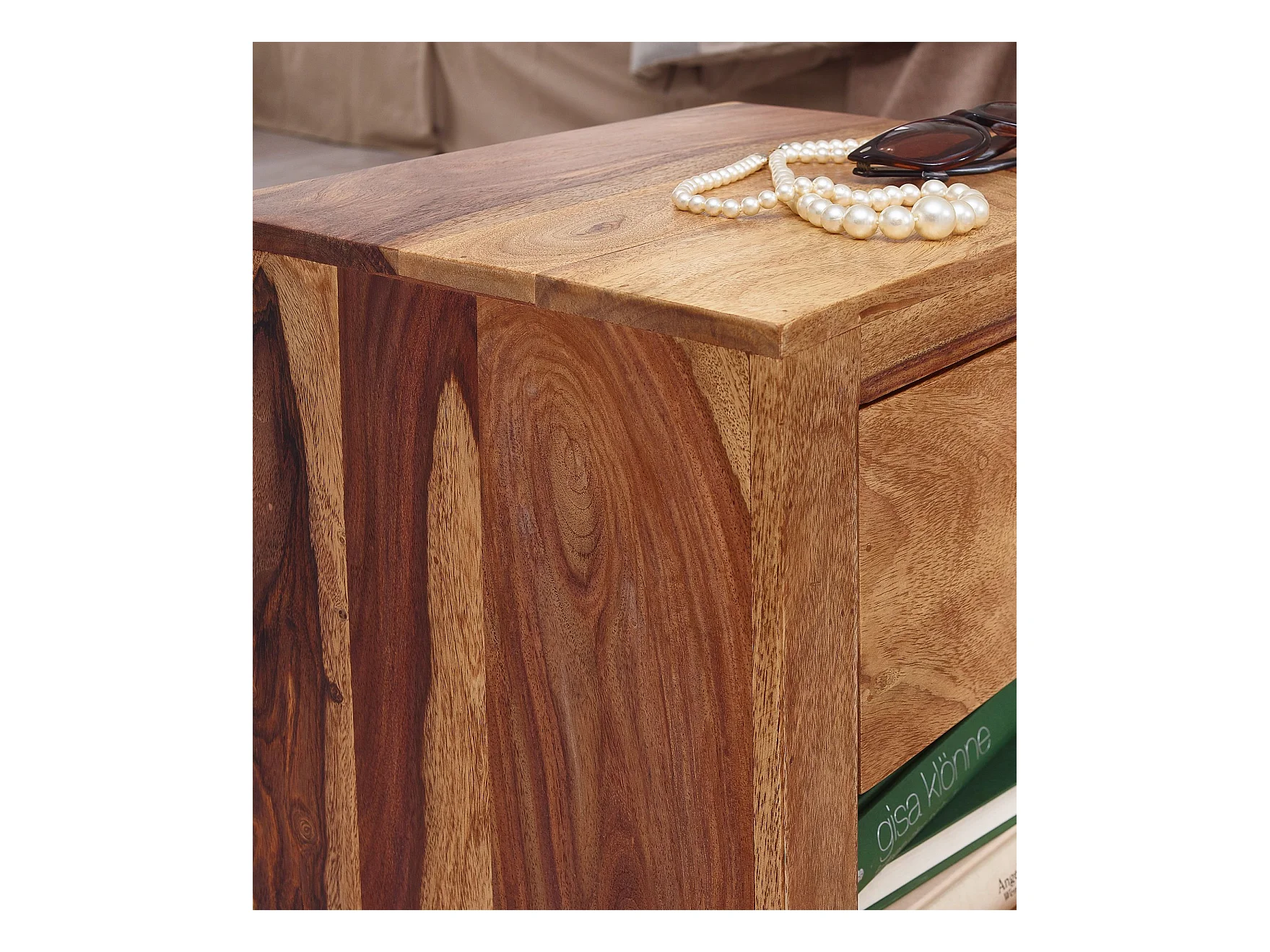 Comodino Letto 60x40x30cm Legno Massello Sheesham Consolle Notturna