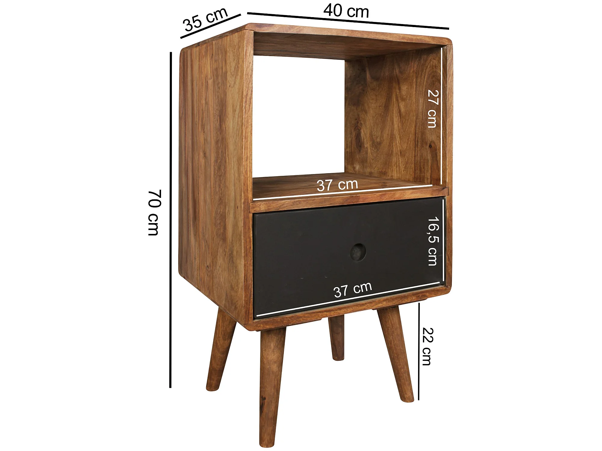 Comodino Letto 40x70x35cm Legno Massello Consolle Notturna da notte