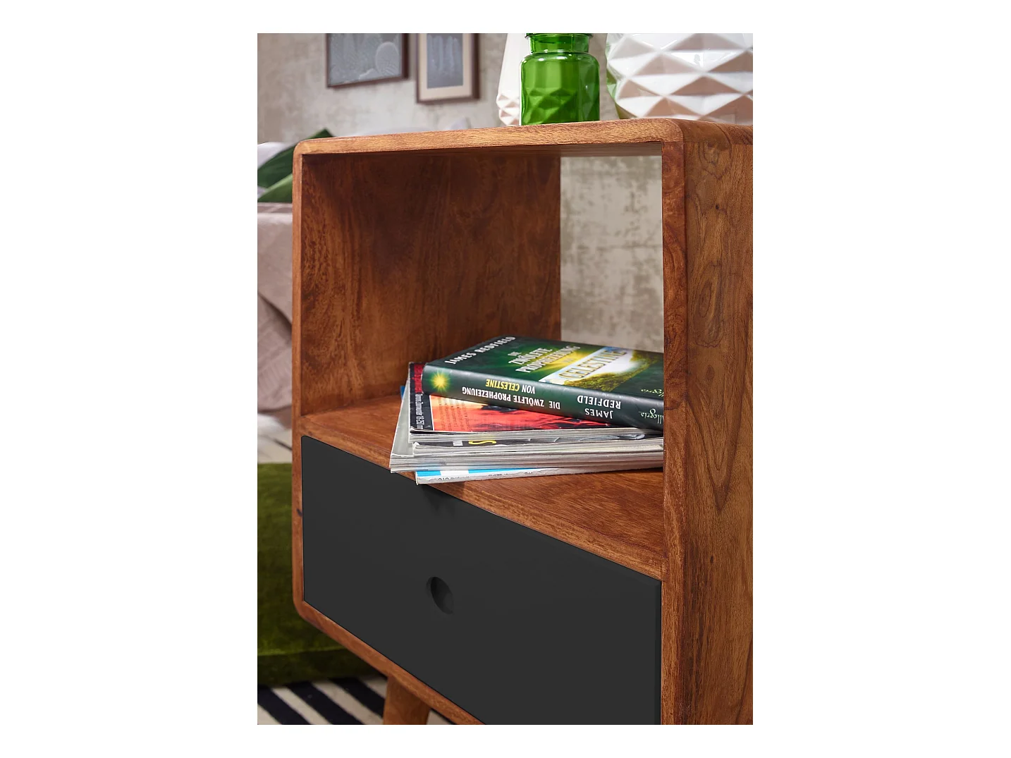 Comodino da Letto 50x40x51 cm Legno Massello Consolle Notturna Alto