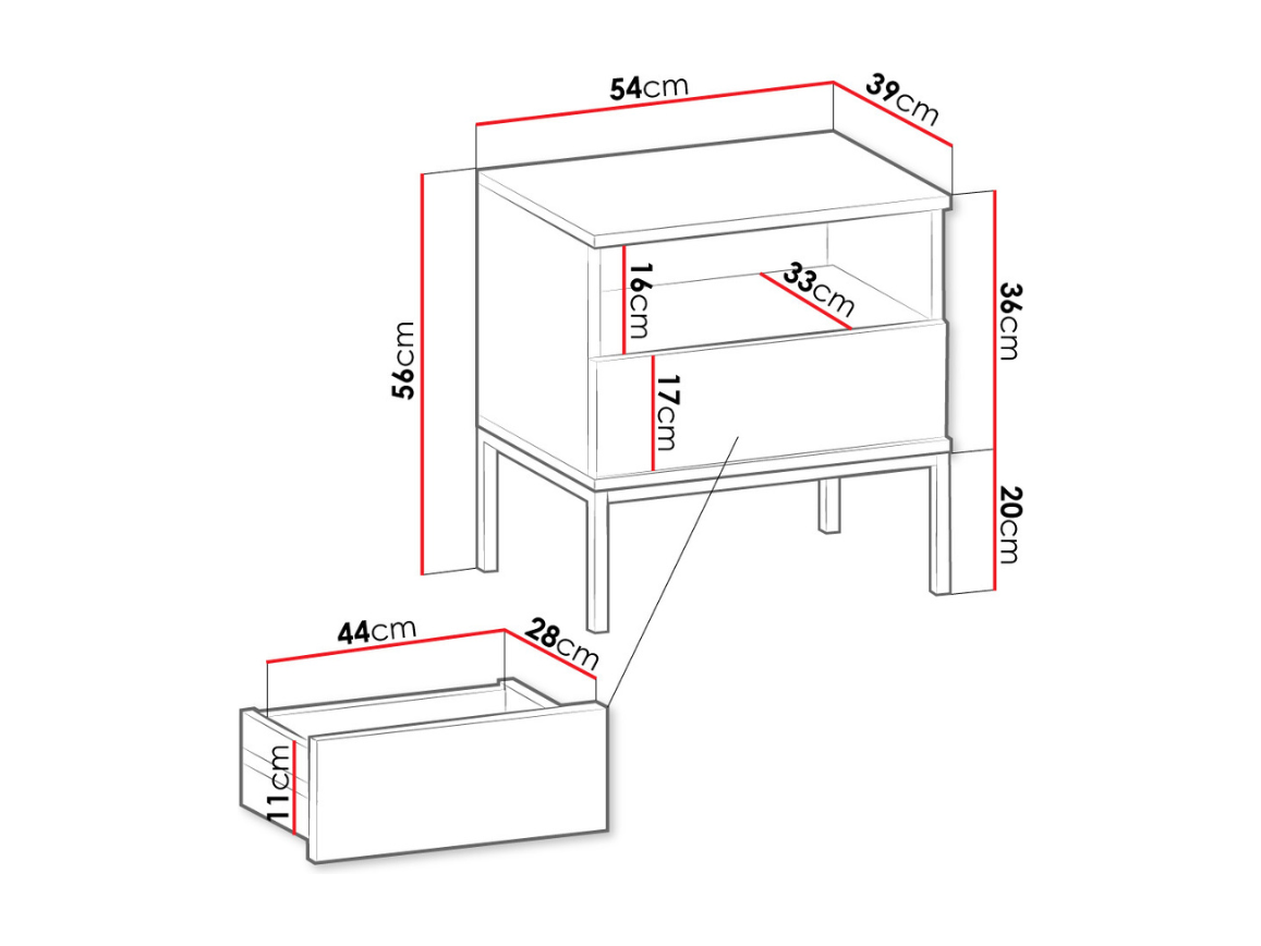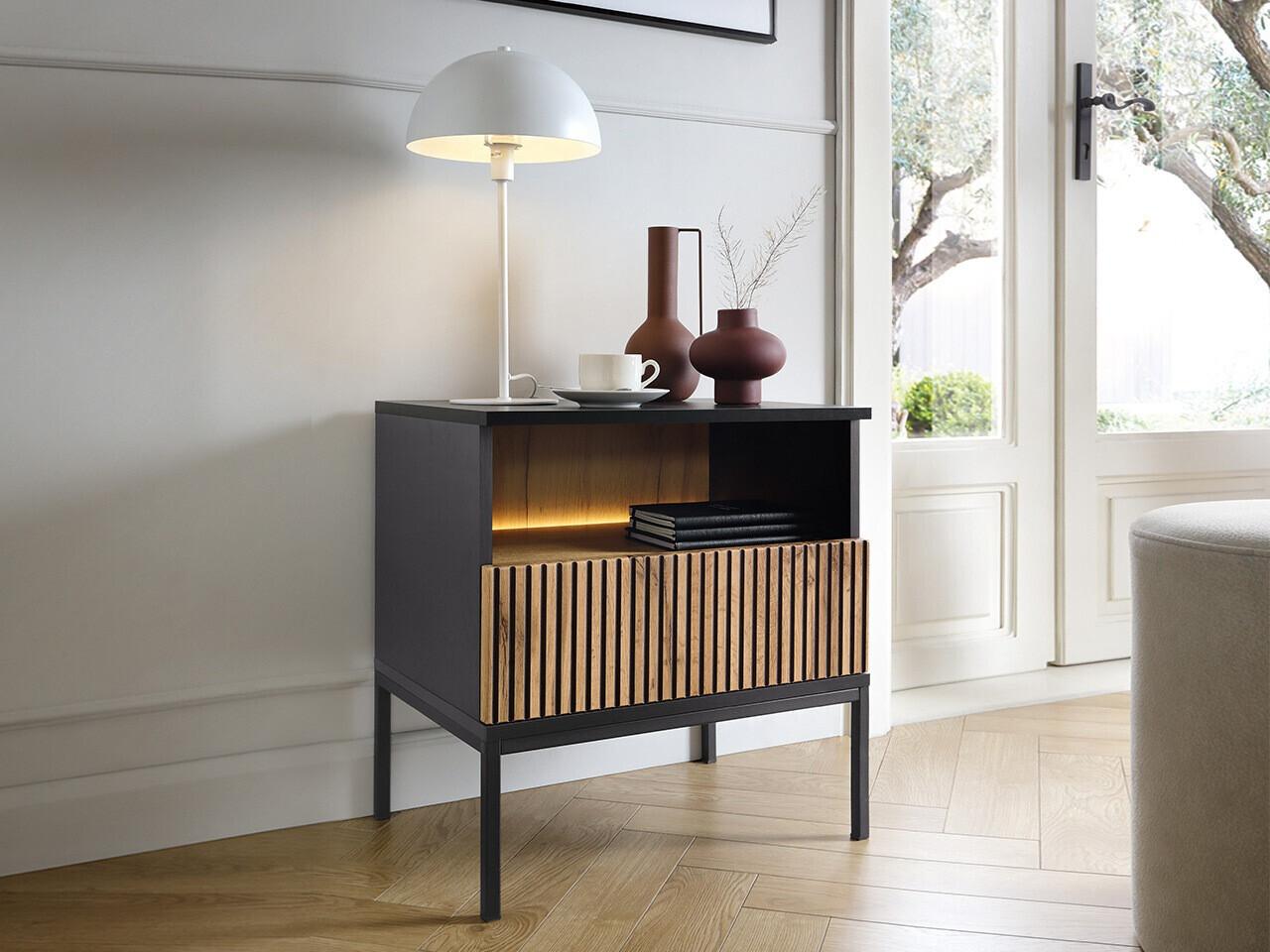 Comodino Lima H101, Nero|Wotan quercia, Numero di cassetti: 1.00, 56x54x39cm