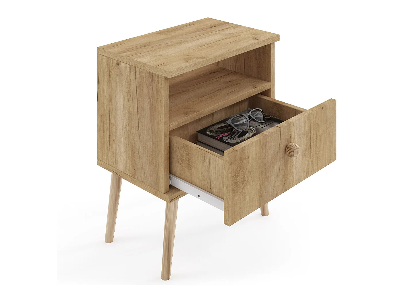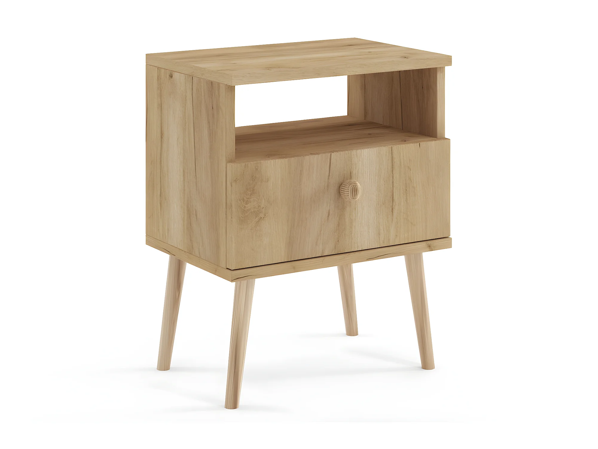 Comodino con 1 cassetto in rattan in rovere 40x30x50,5 cm cassettiera per letto