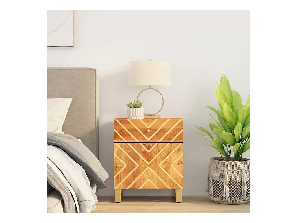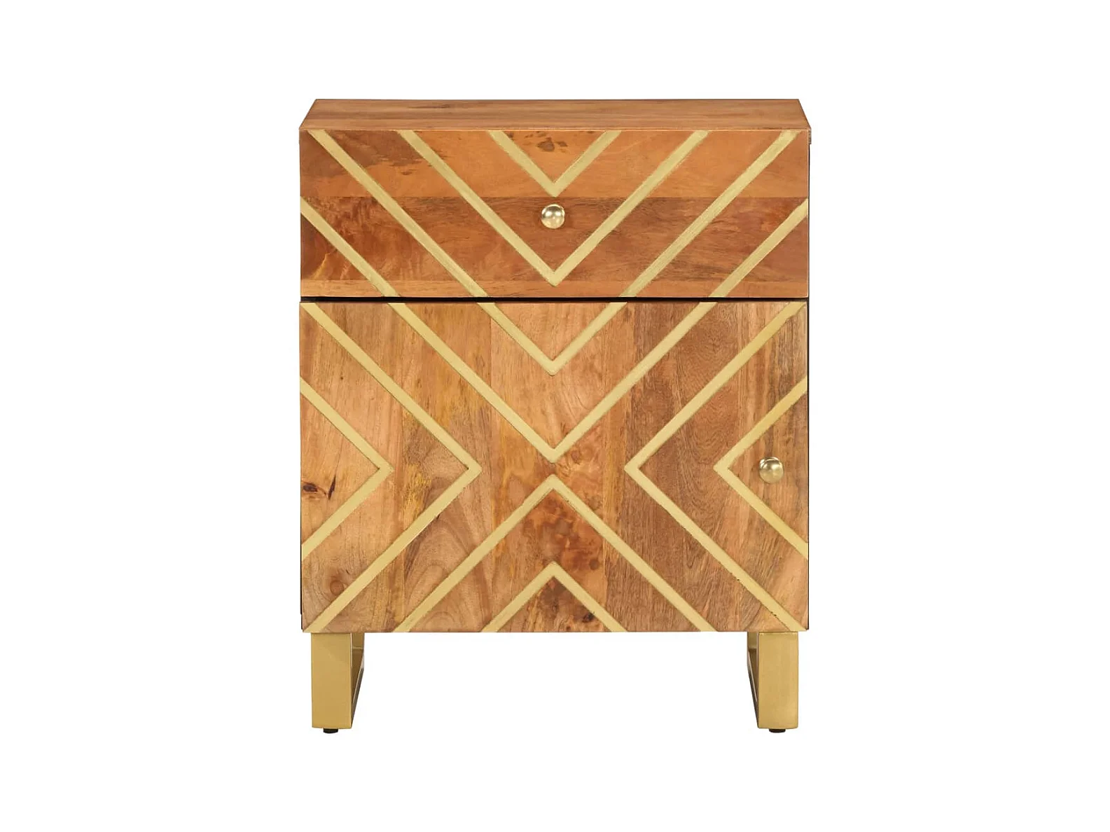 Comodino marrone e nero 50x33x60 cm in legno massello di mango
