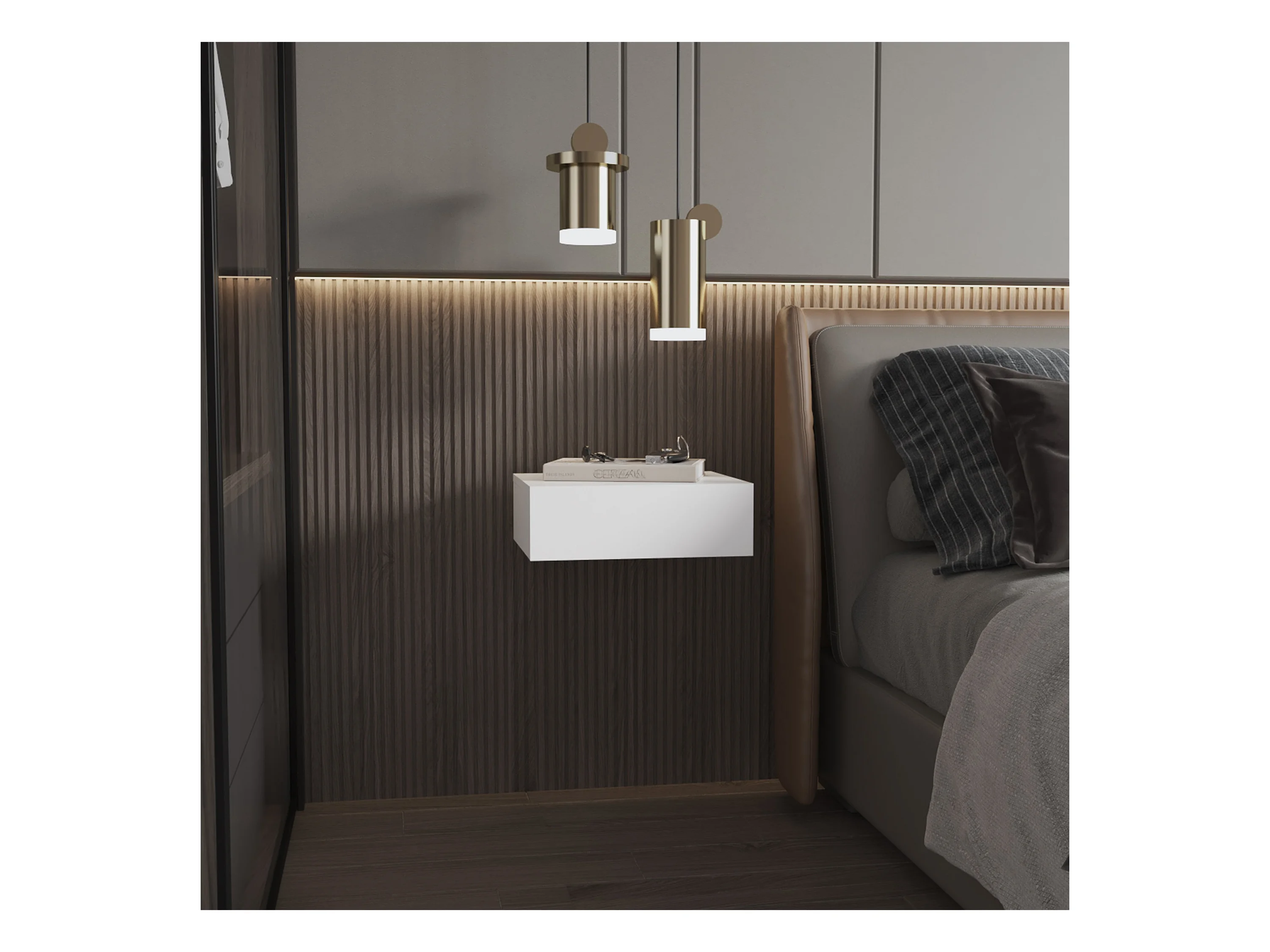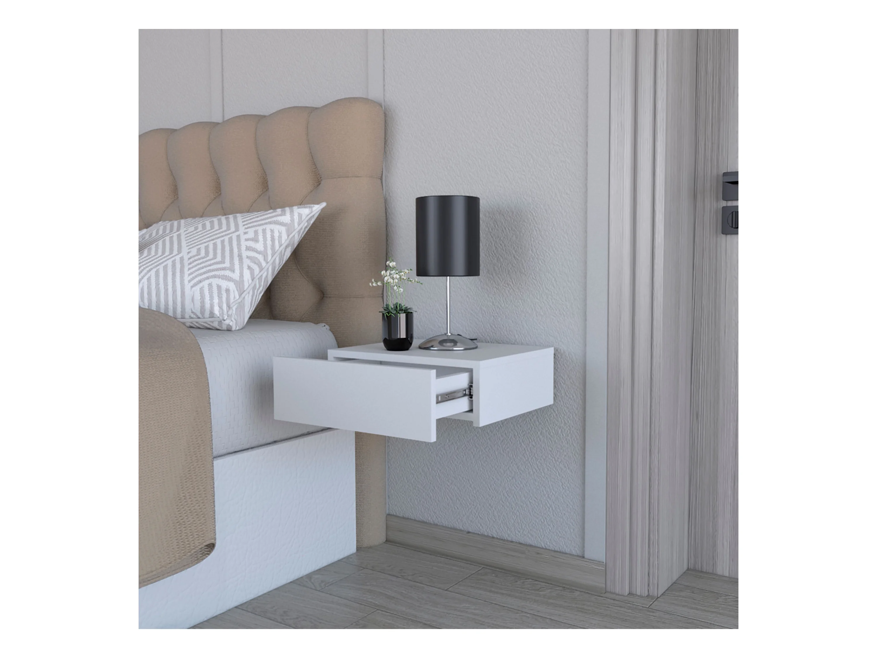 Comodino galleggiante in melamina Milano con cassetto con guida in metallo , 12.95 cm X 39.8 cm X 34 cm , Bianco