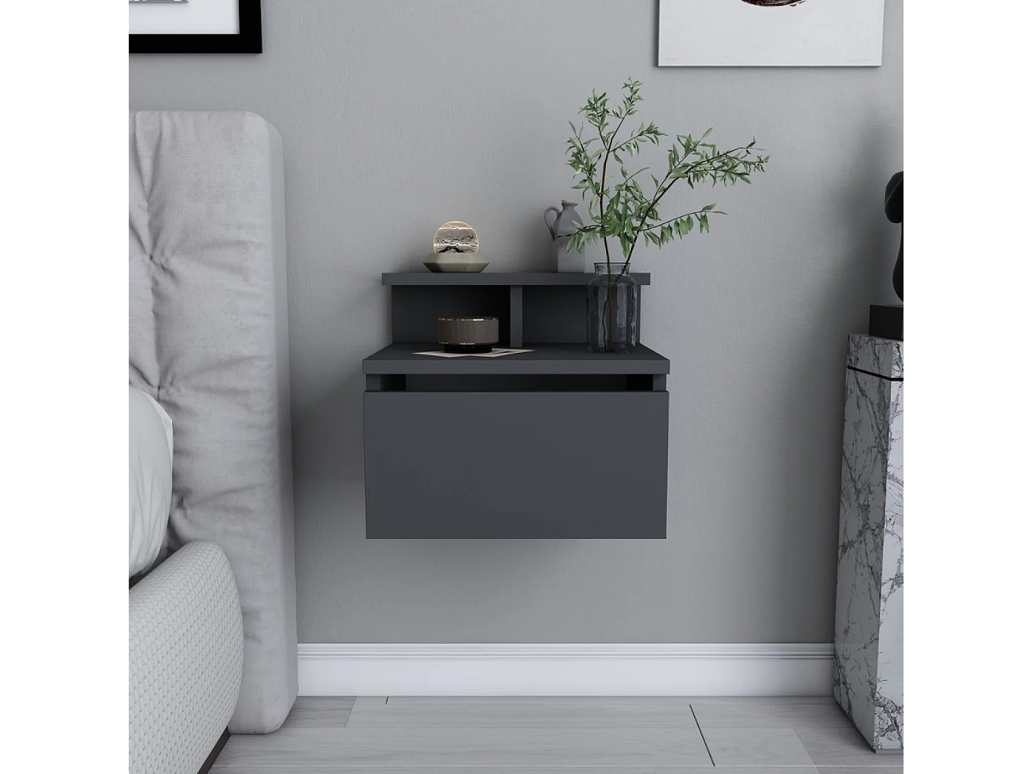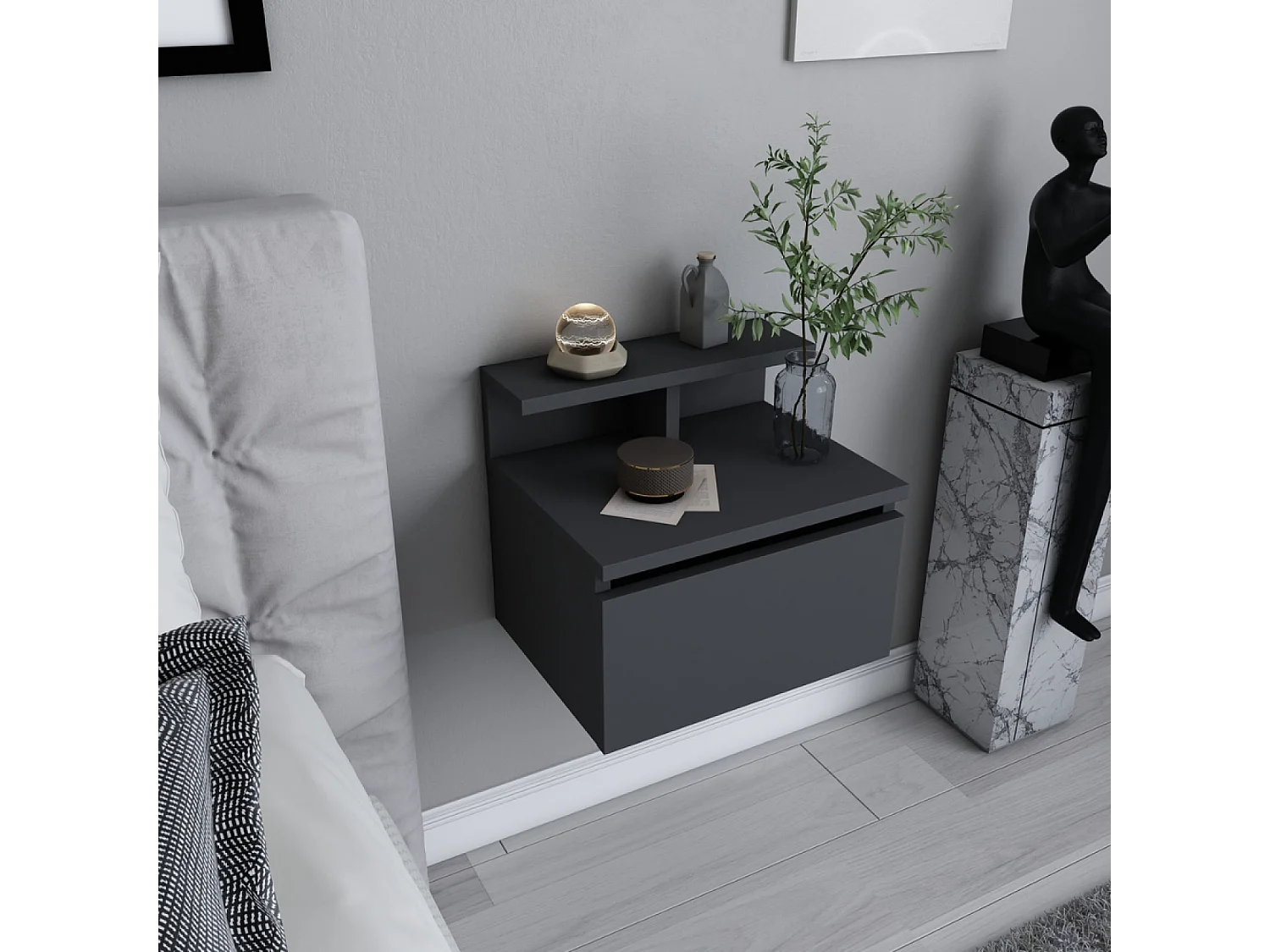 Comodino murale antracite con cassetto e ripiano VISBY
