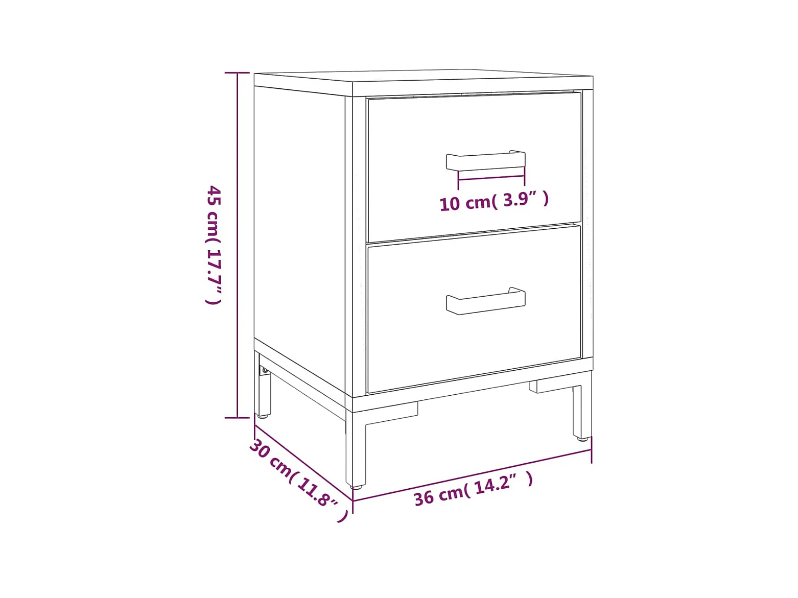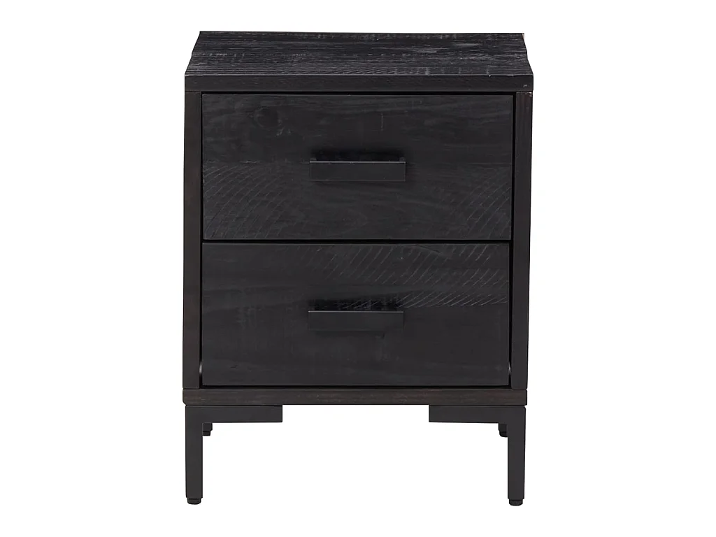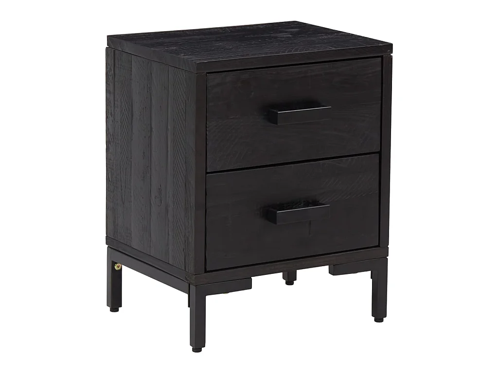 Comodino Nero 40x30x50 cm in Legno Massello di Mango e Ferro
