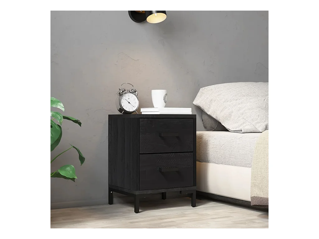 Comodino Nero 36x30x45 cm Legno di pino massiccio