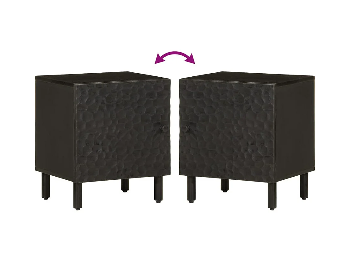 Comodini 2 pezzi in legno massello di mango grezzo nero