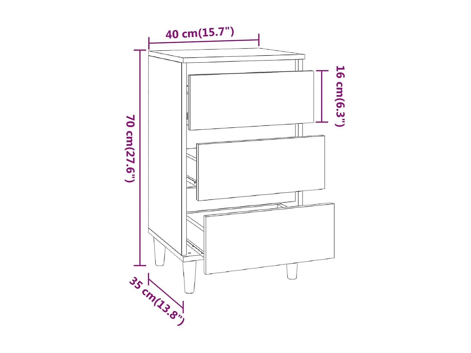 Comodino Nero 40x35x70 cm in Legno Multistrato