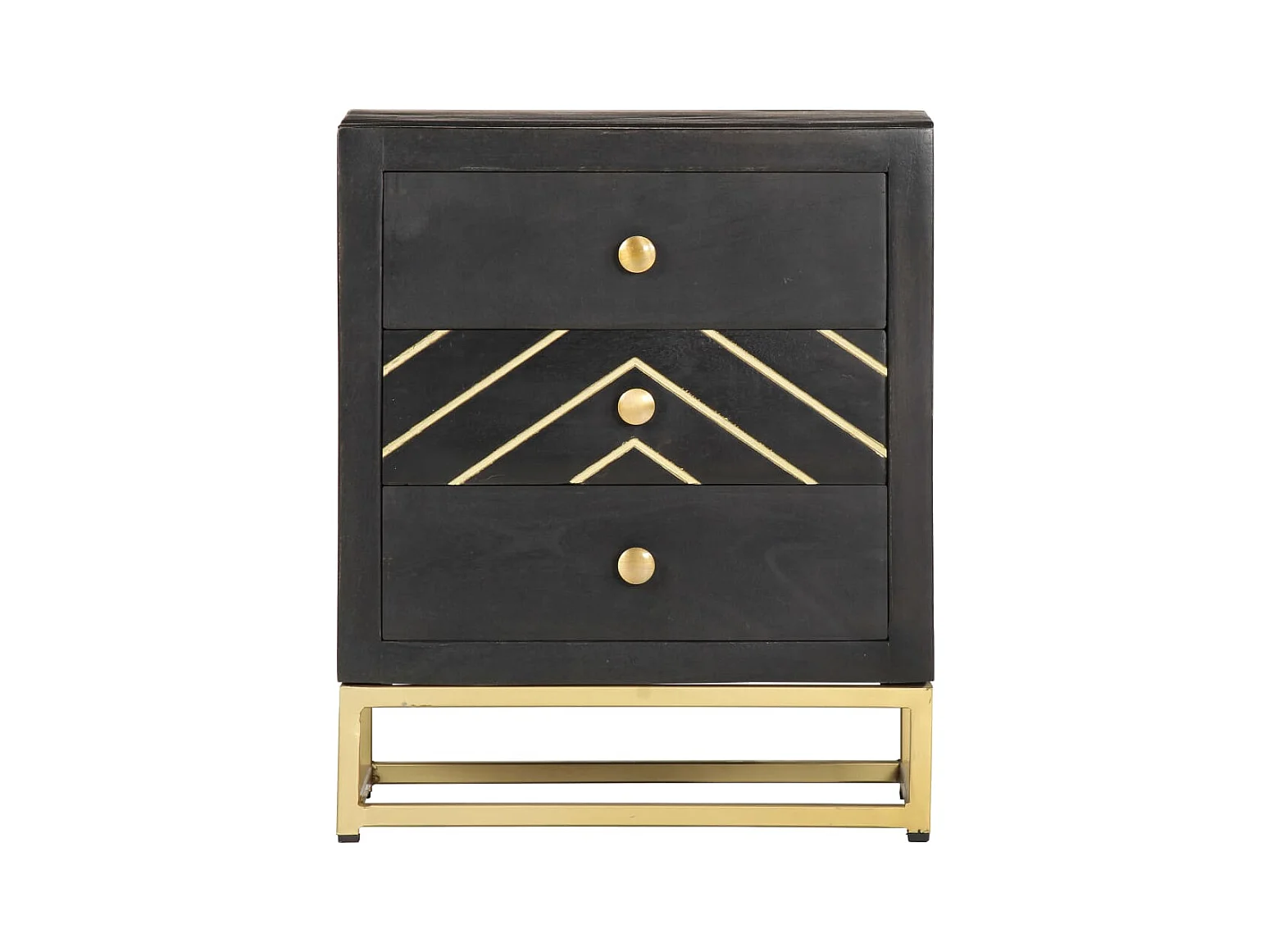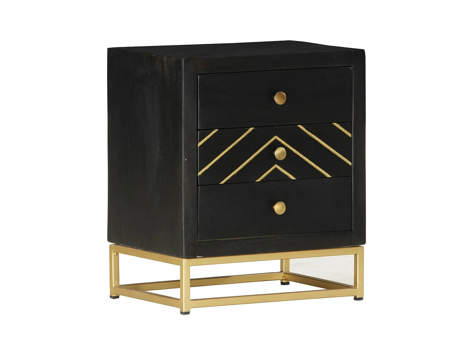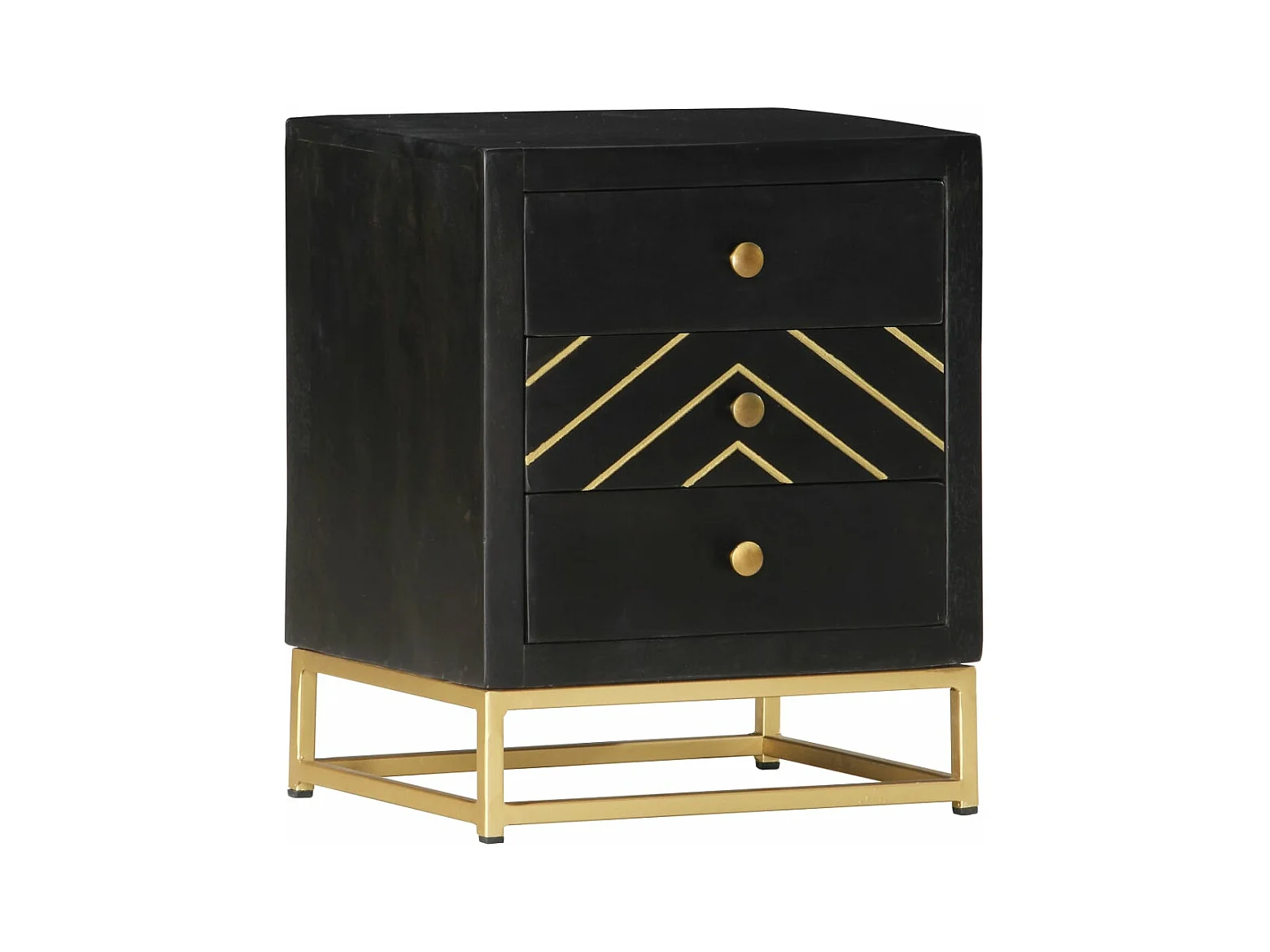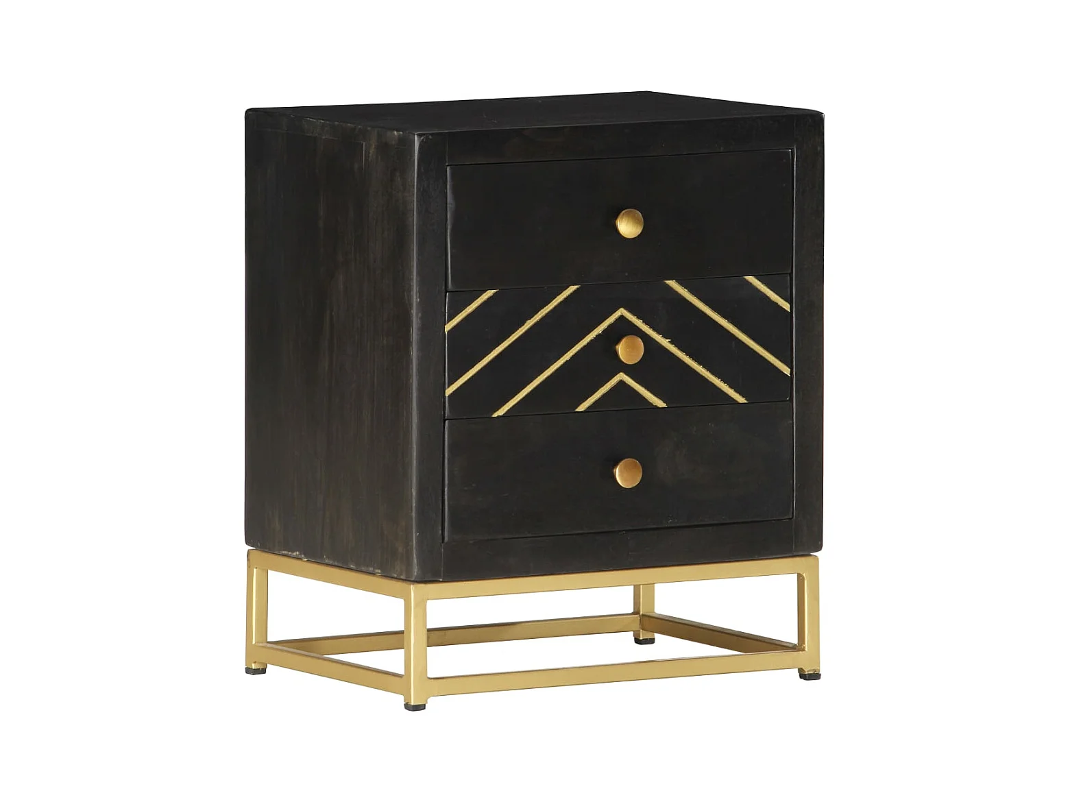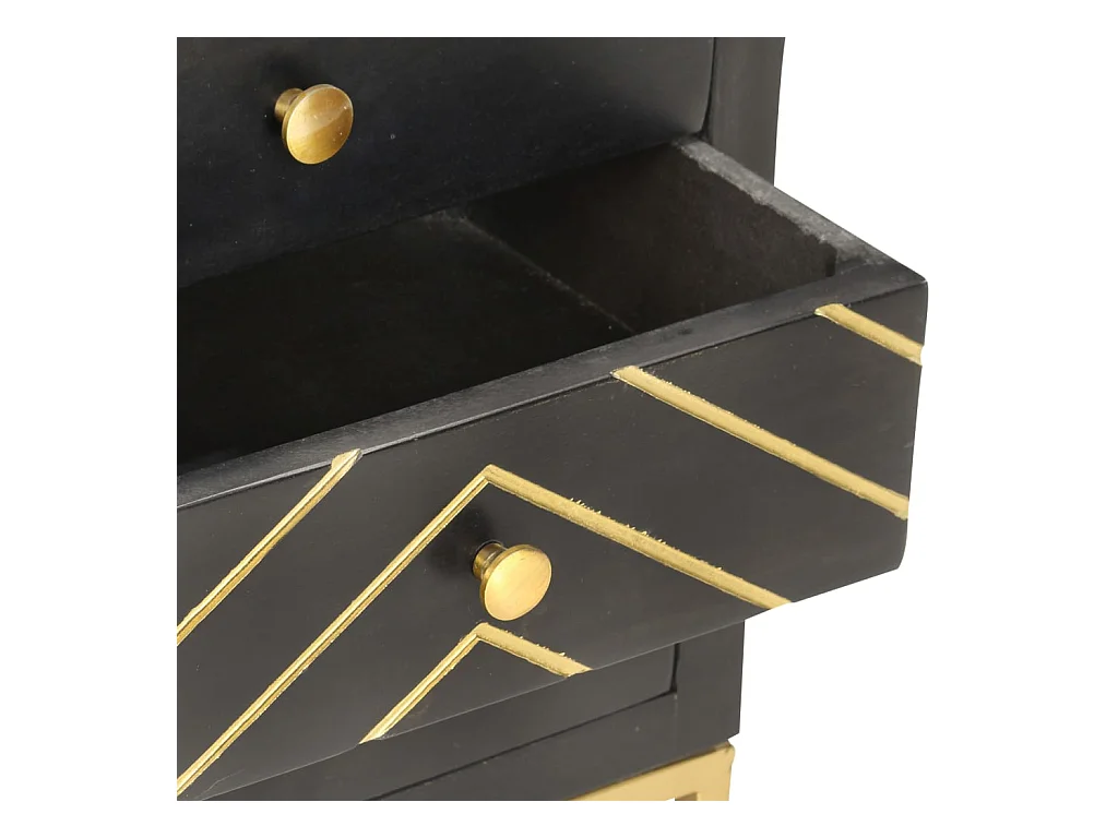 Comodino Nero e Oro 40x30x50 cm in Legno Massello di Mango