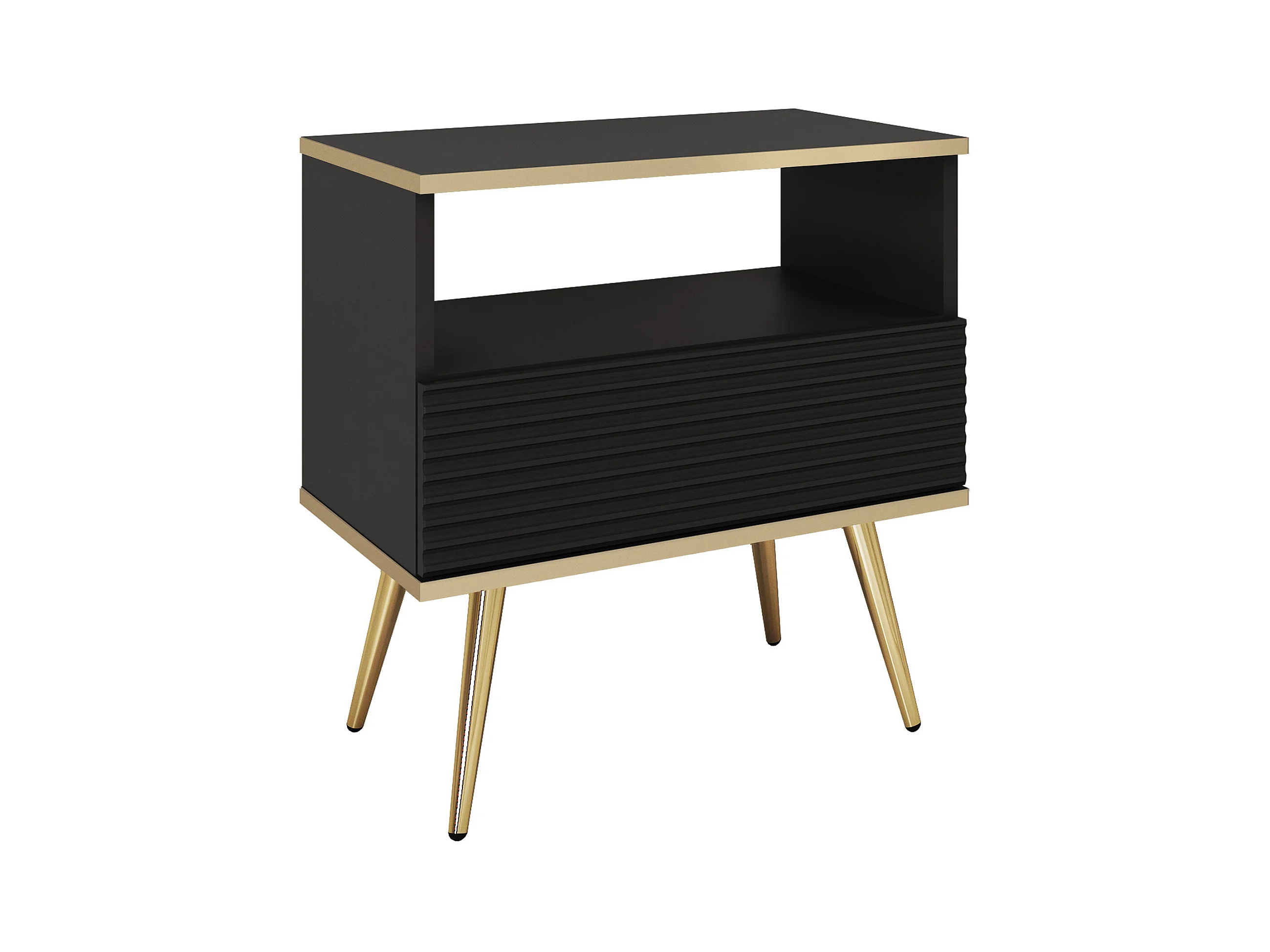 Comodino nero glamour con gambe dorate, 54 x 59 x 39