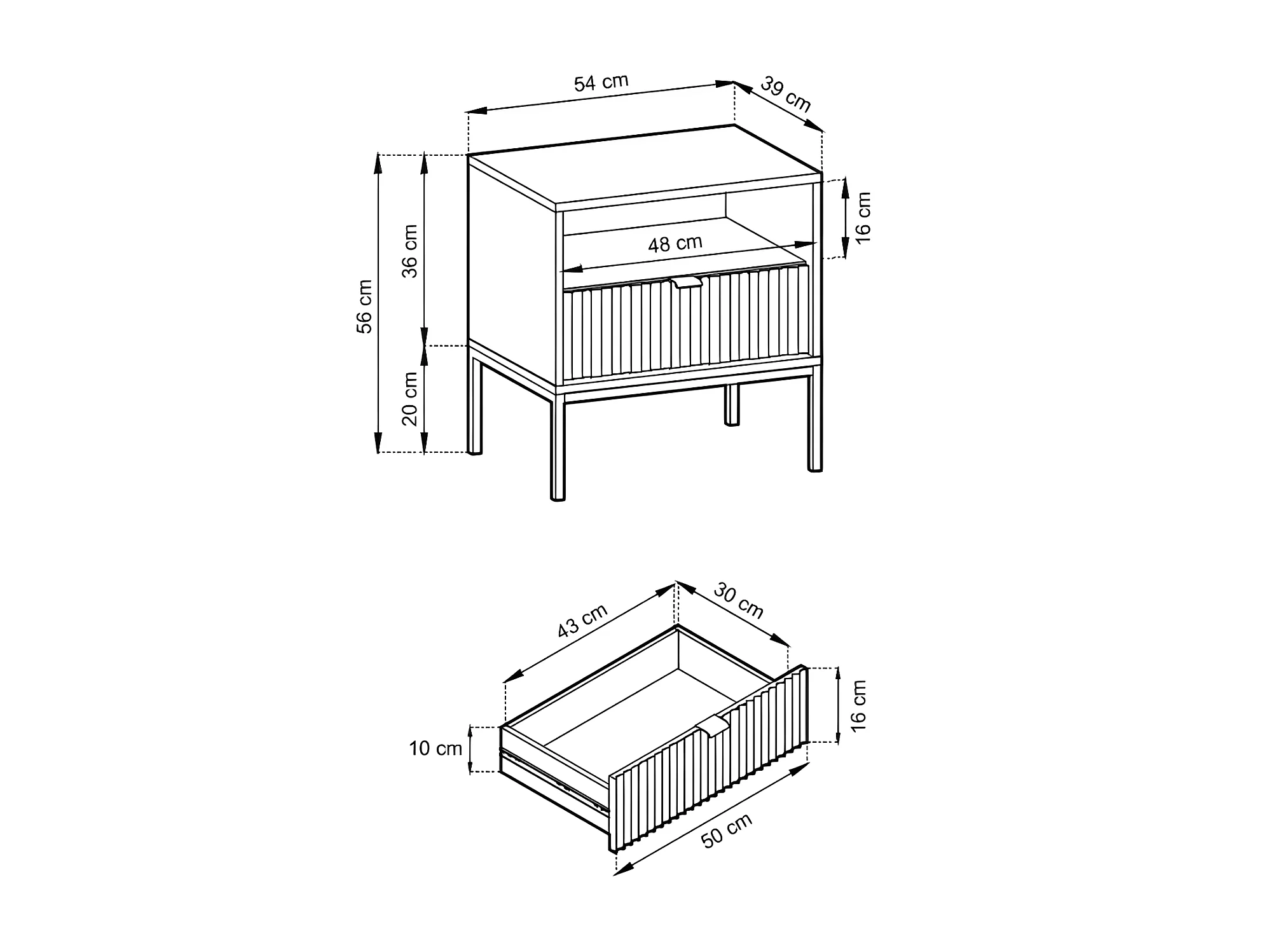 Comodino Napoli, con 2 cassetti, 50.54 cm X 40.69 cm X 32.76 cm , Nero