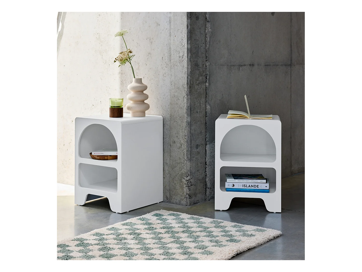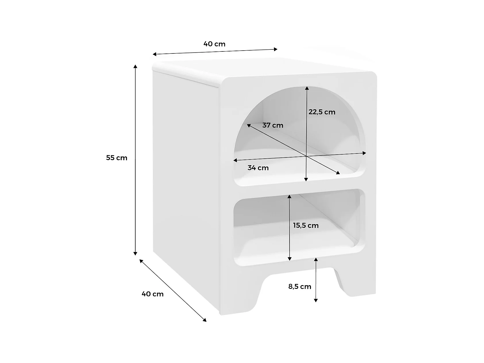 Comodino organico effetto legno bianco, 2 nicchie mobileoggetti,