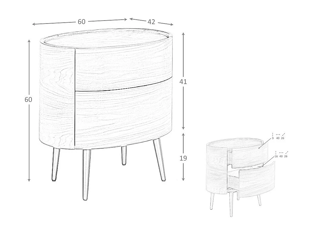 Comodino in noce e acciaio nero 7074 ANGEL CERDA