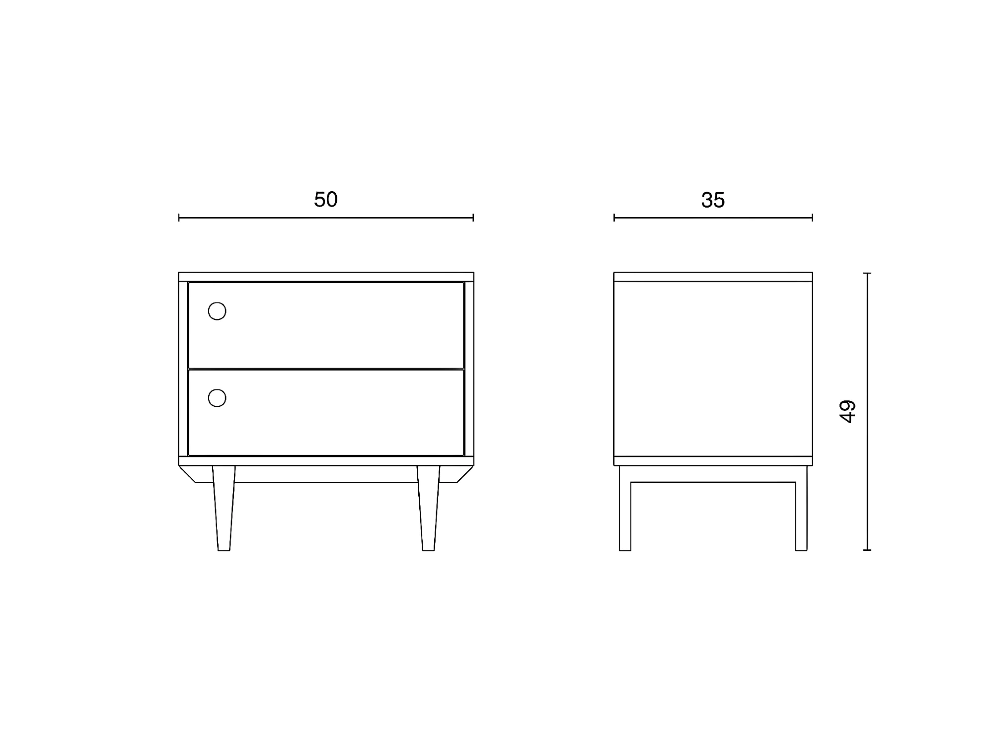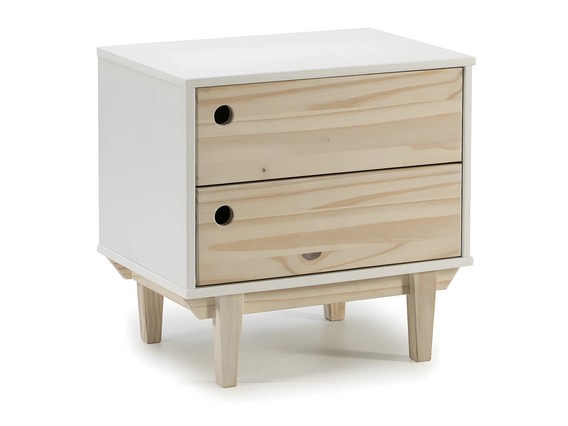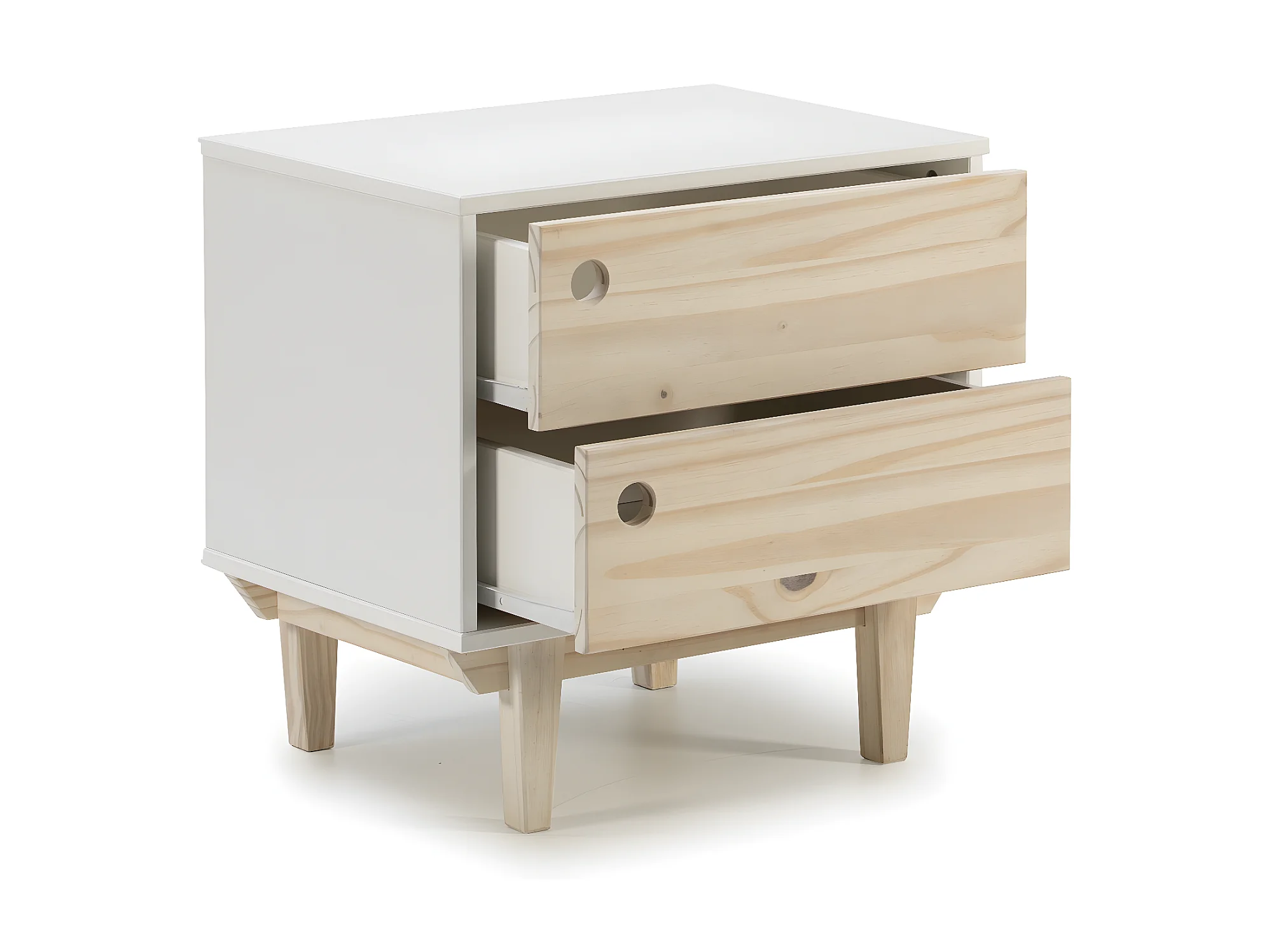Comodino Roma 2 Cassetti in Bianco, Gambe e Frontali in Legno Naturale