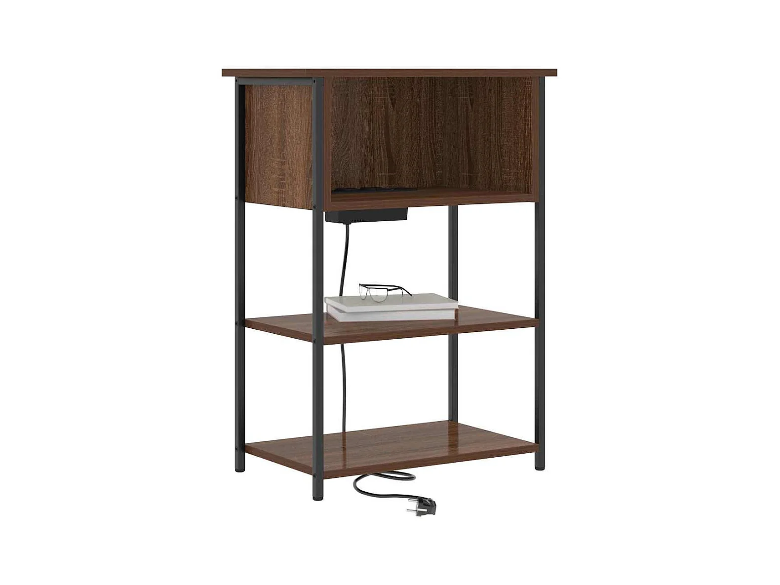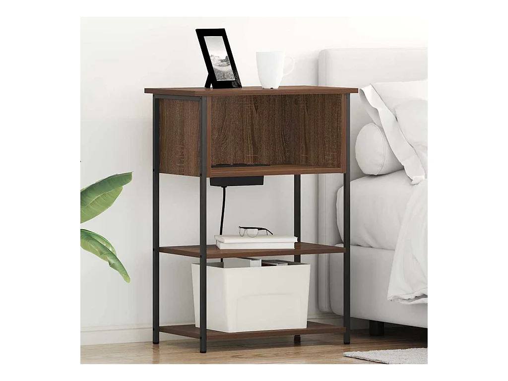 Comodino con stazione di ricarica Rovere marrone