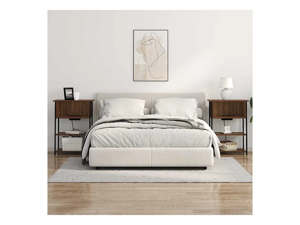 Comodino con stazione di ricarica 2 pezzi Rovere affumicato