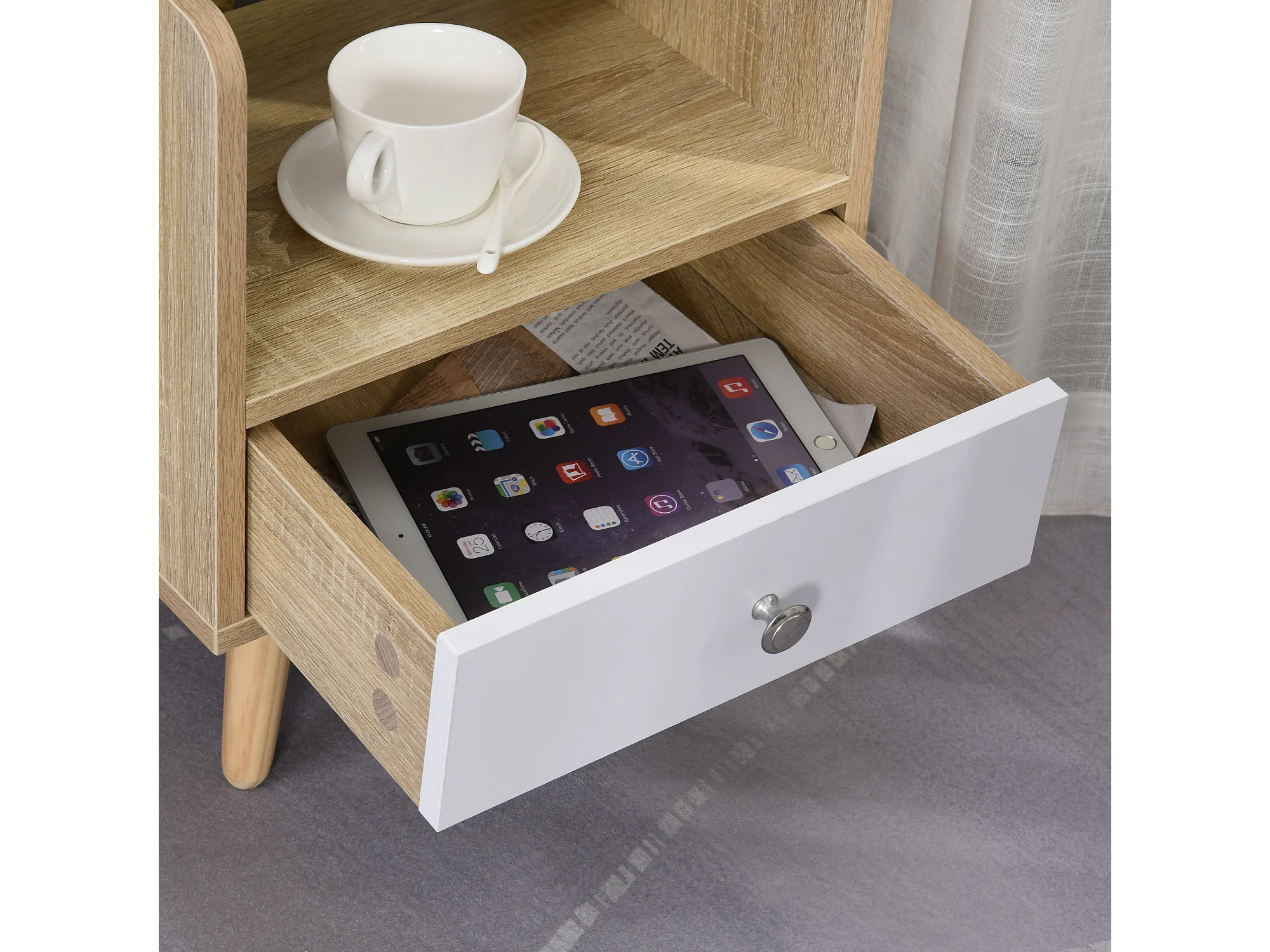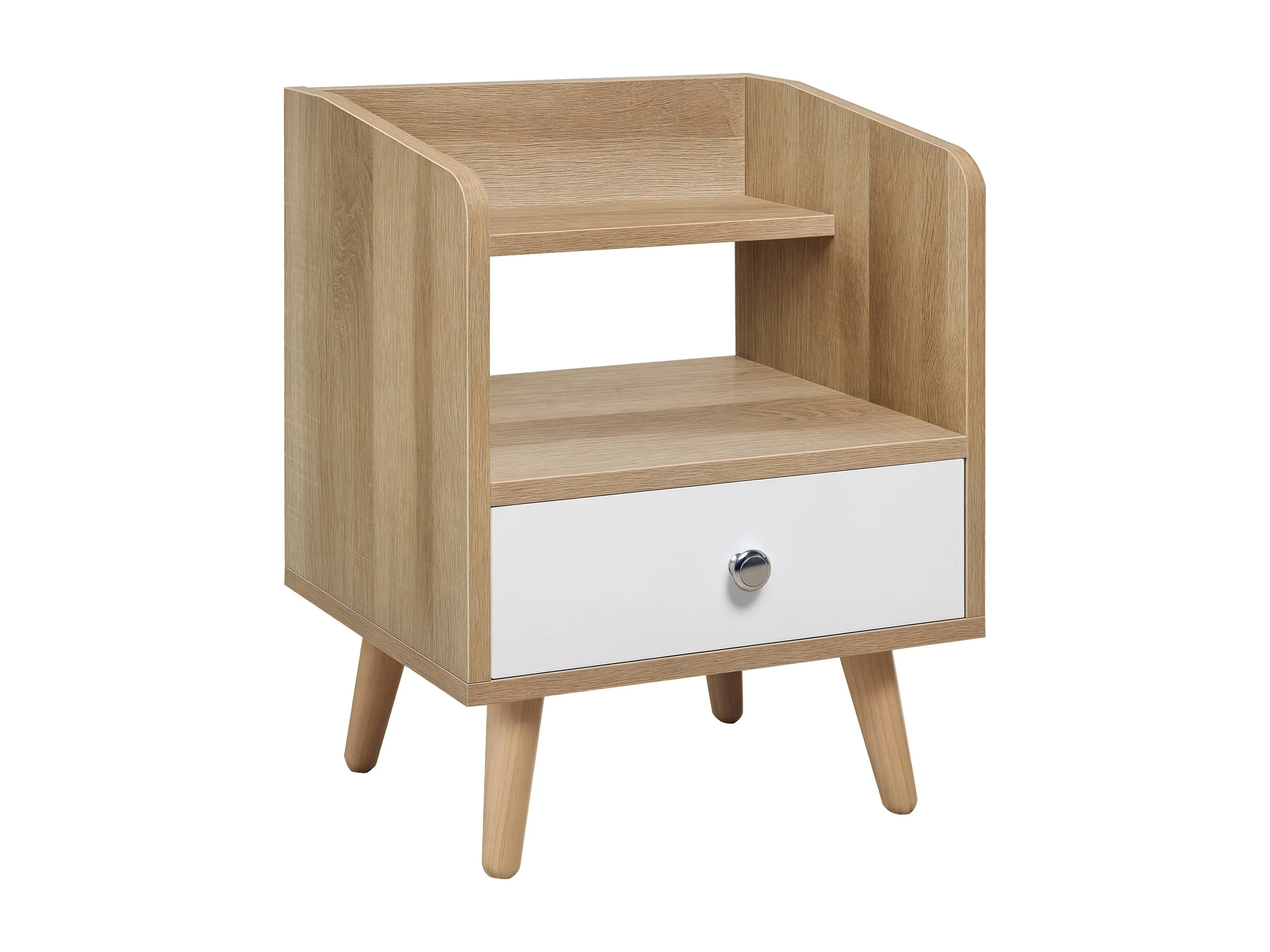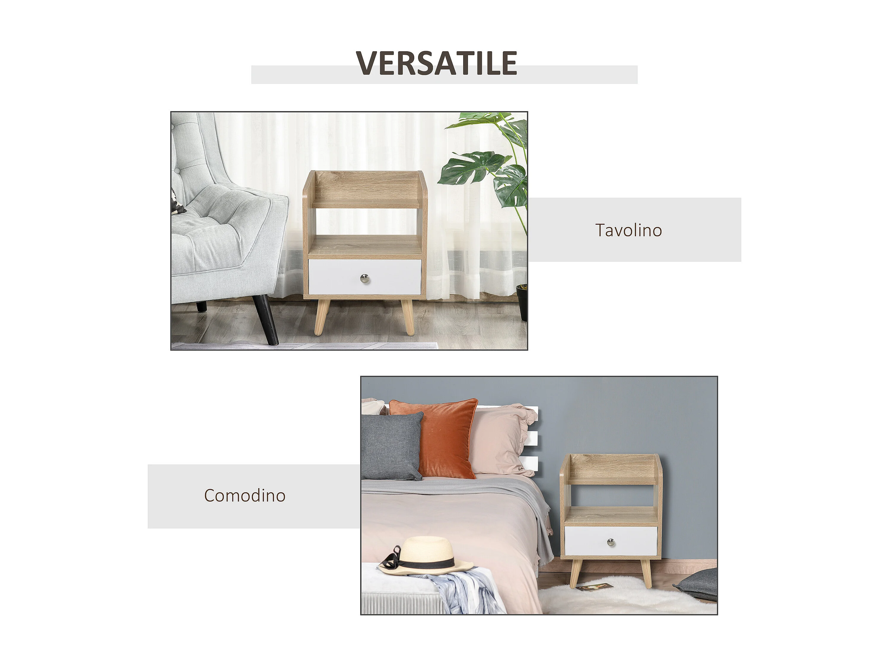Comodino salvaspazio in legno con cassetto e mensola 37x30x48cm