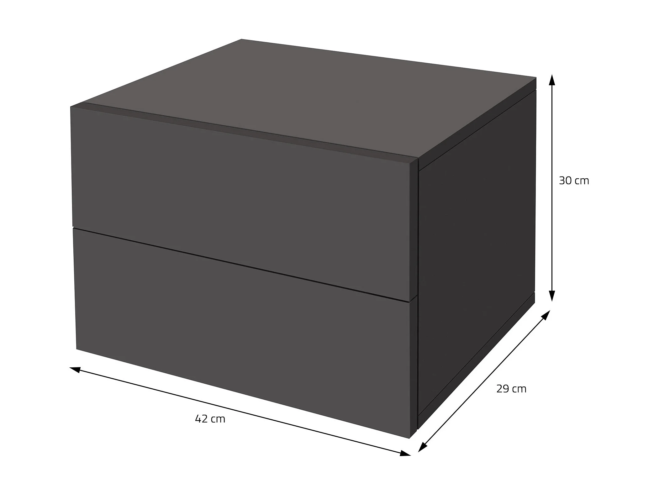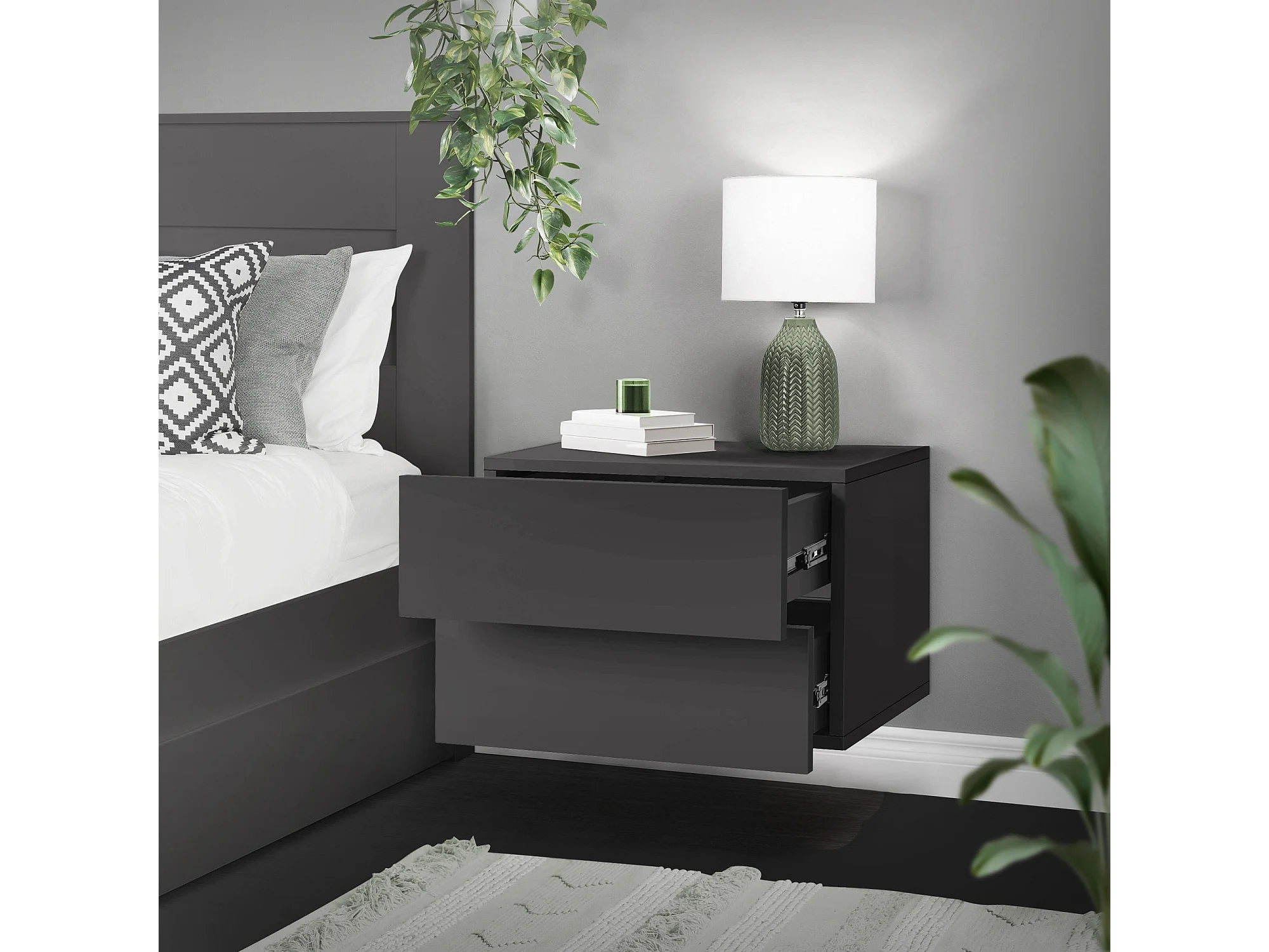 Comodino sospeso attacco a parete camera letto 2 cassetti grigio scuro 42x30 cm