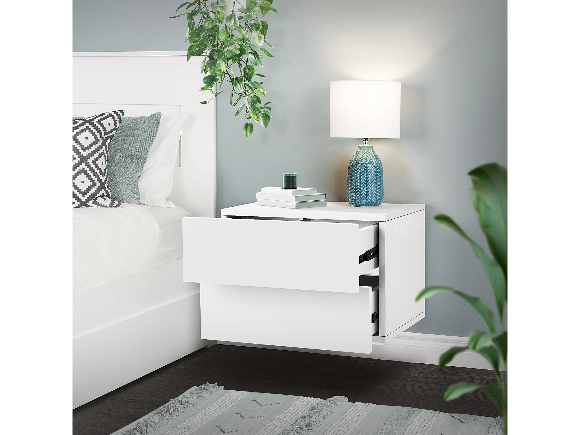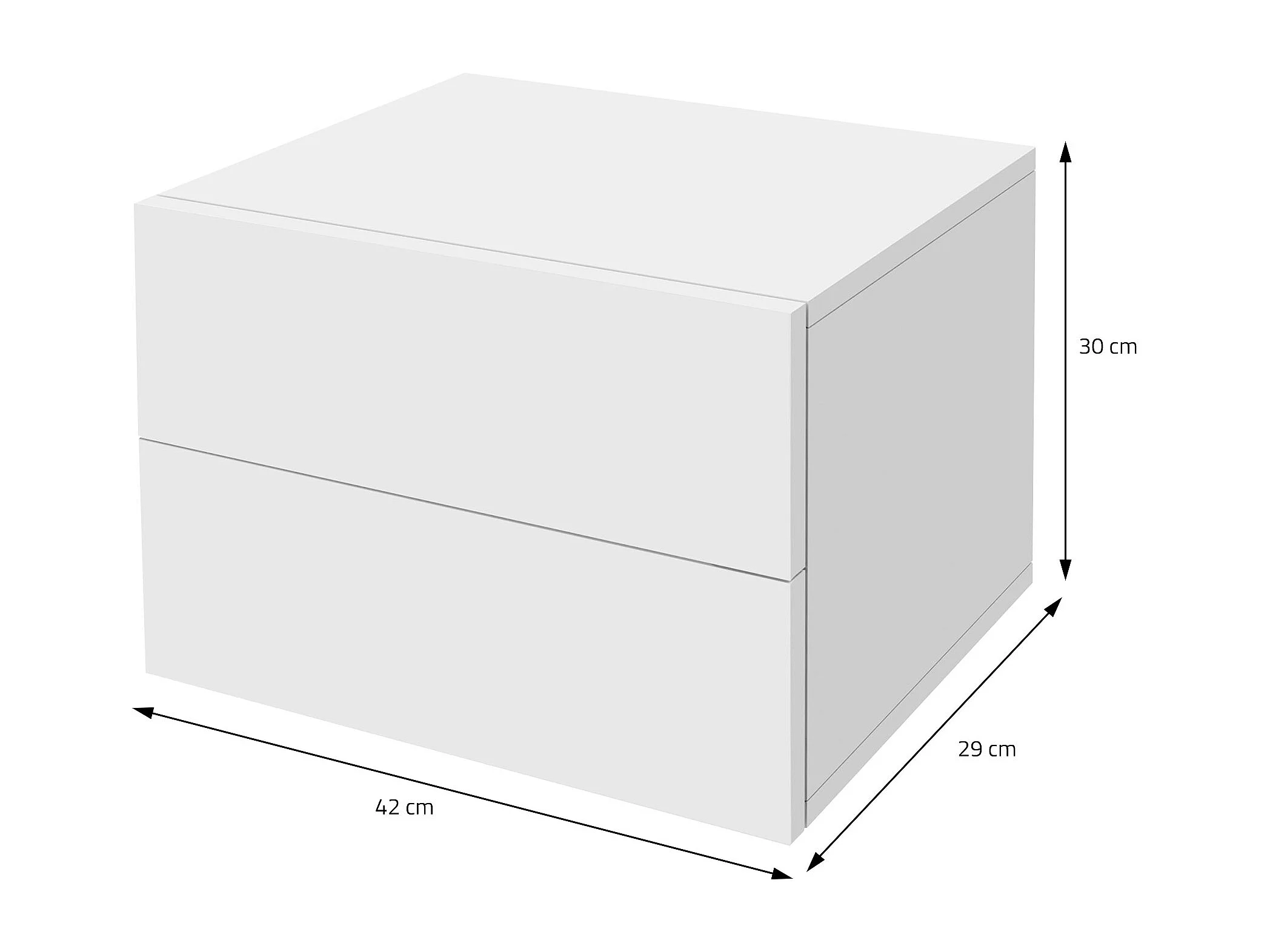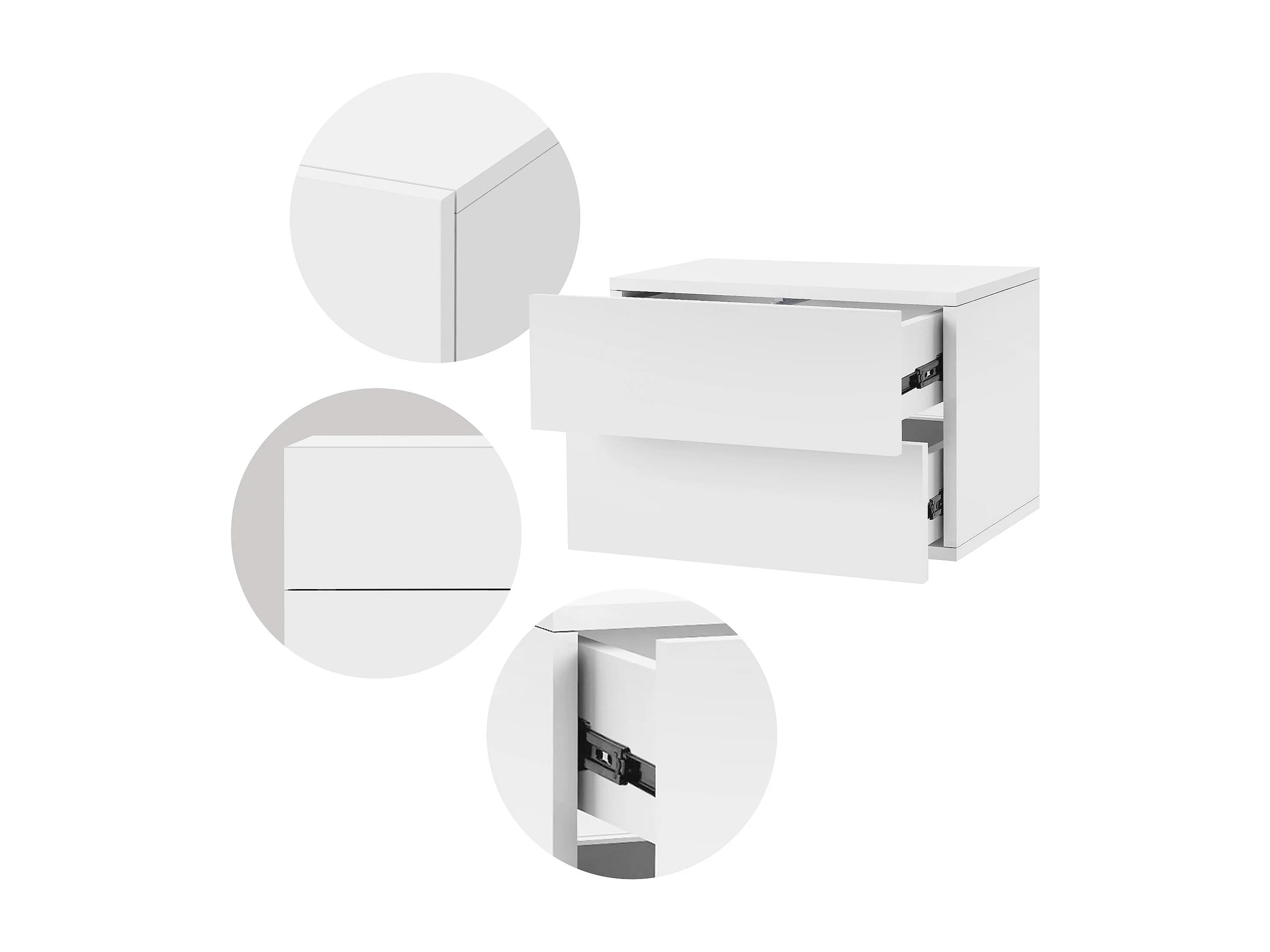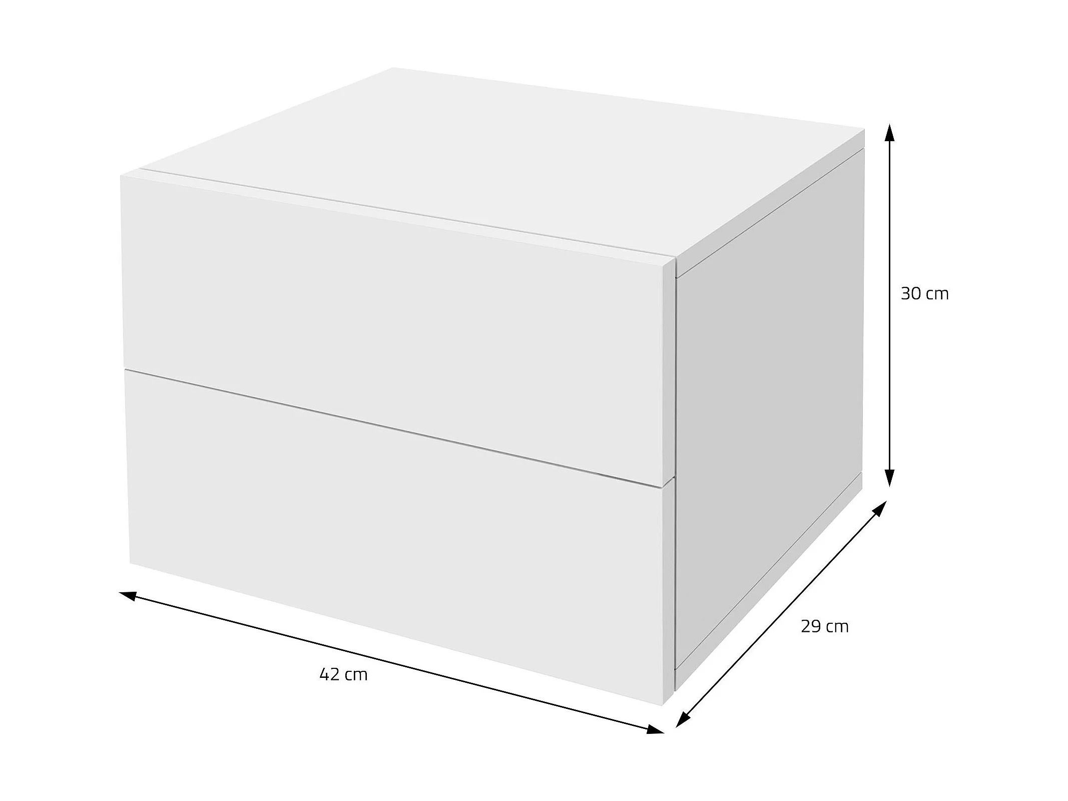 Comodino sospeso con 2 cassetti camera da letto 42x30x29 cm in MDF bianco opaco