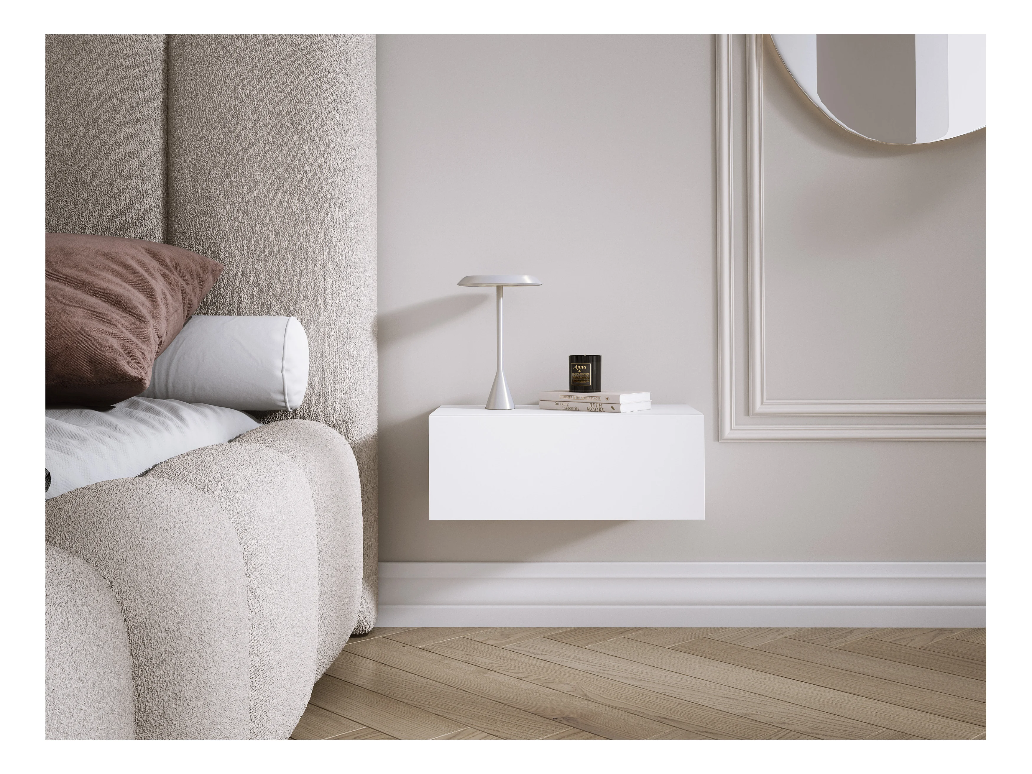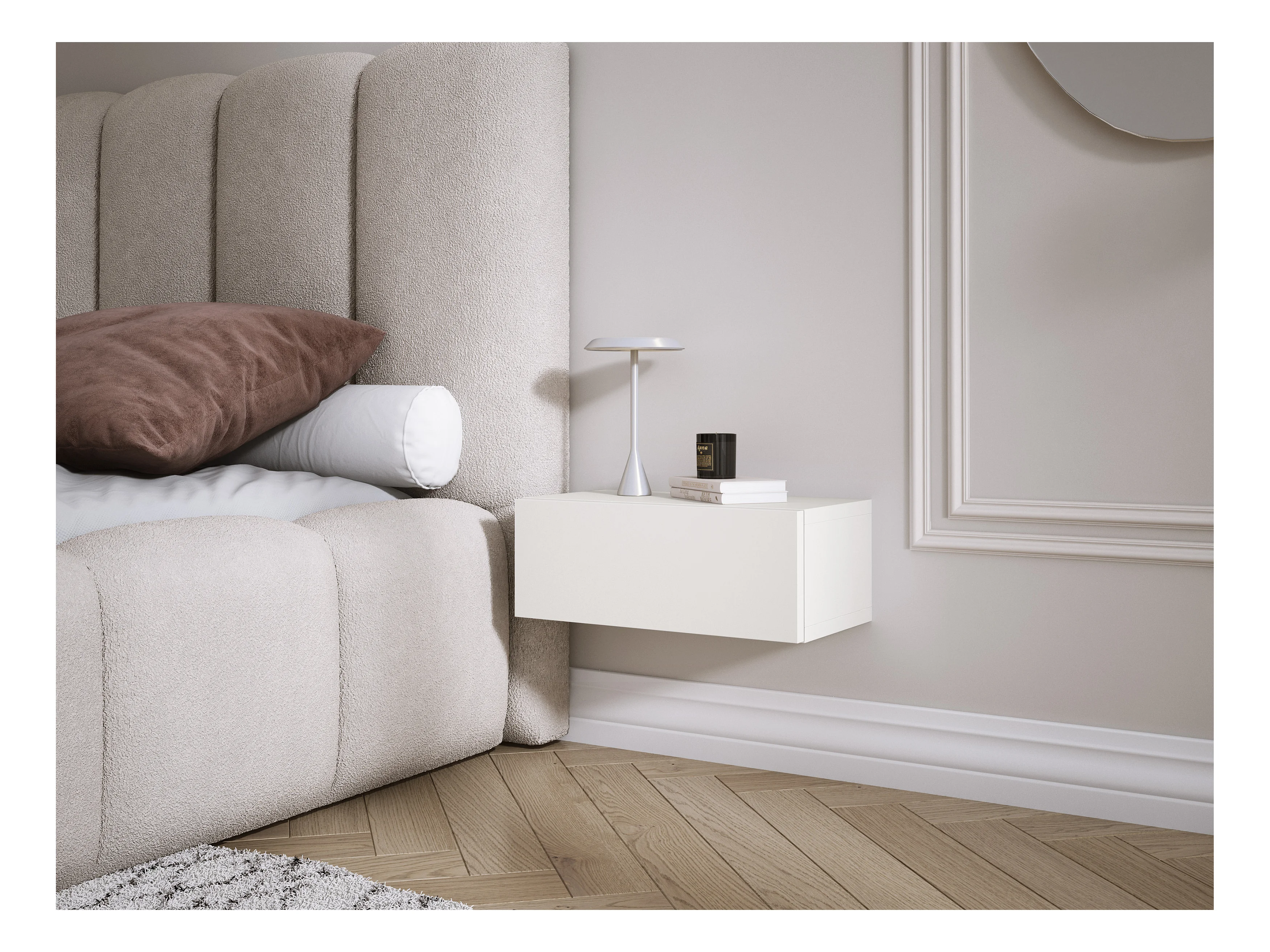 Comodino sospeso con cassetto – frontale liscio – colore: Bianco, 40 x 20 x 16 cm