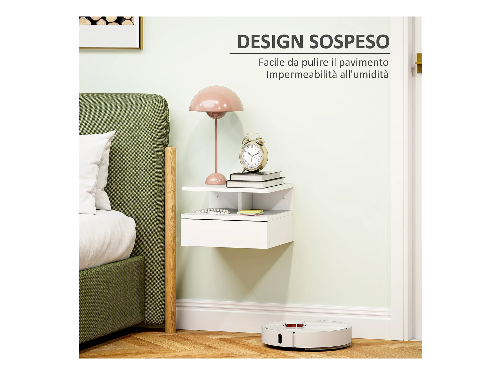 Comodino set 2 pezzi con cassetto e design sospeso bianco