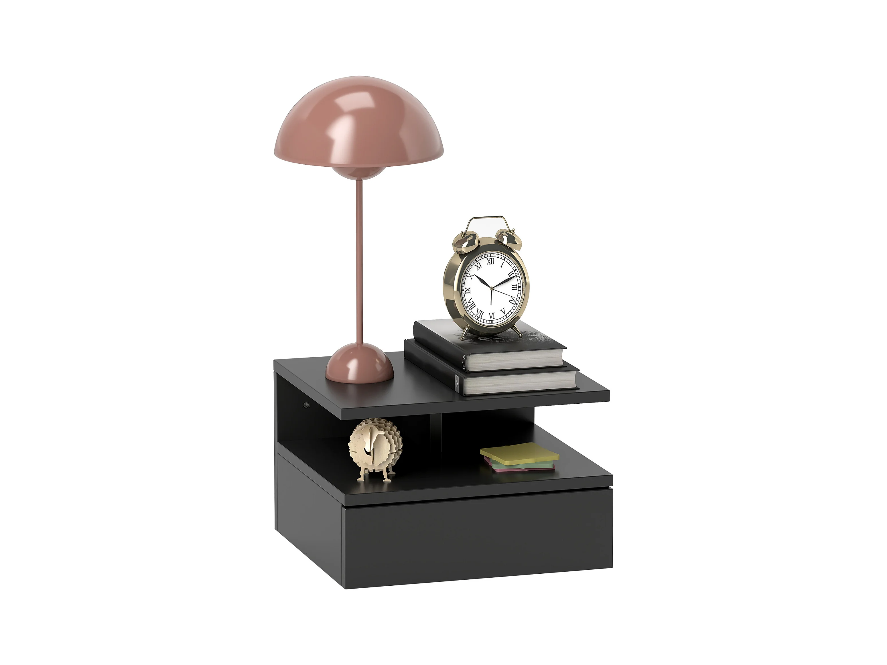 Comodino con cassetto dal design sospeso moderno in truciolato nero