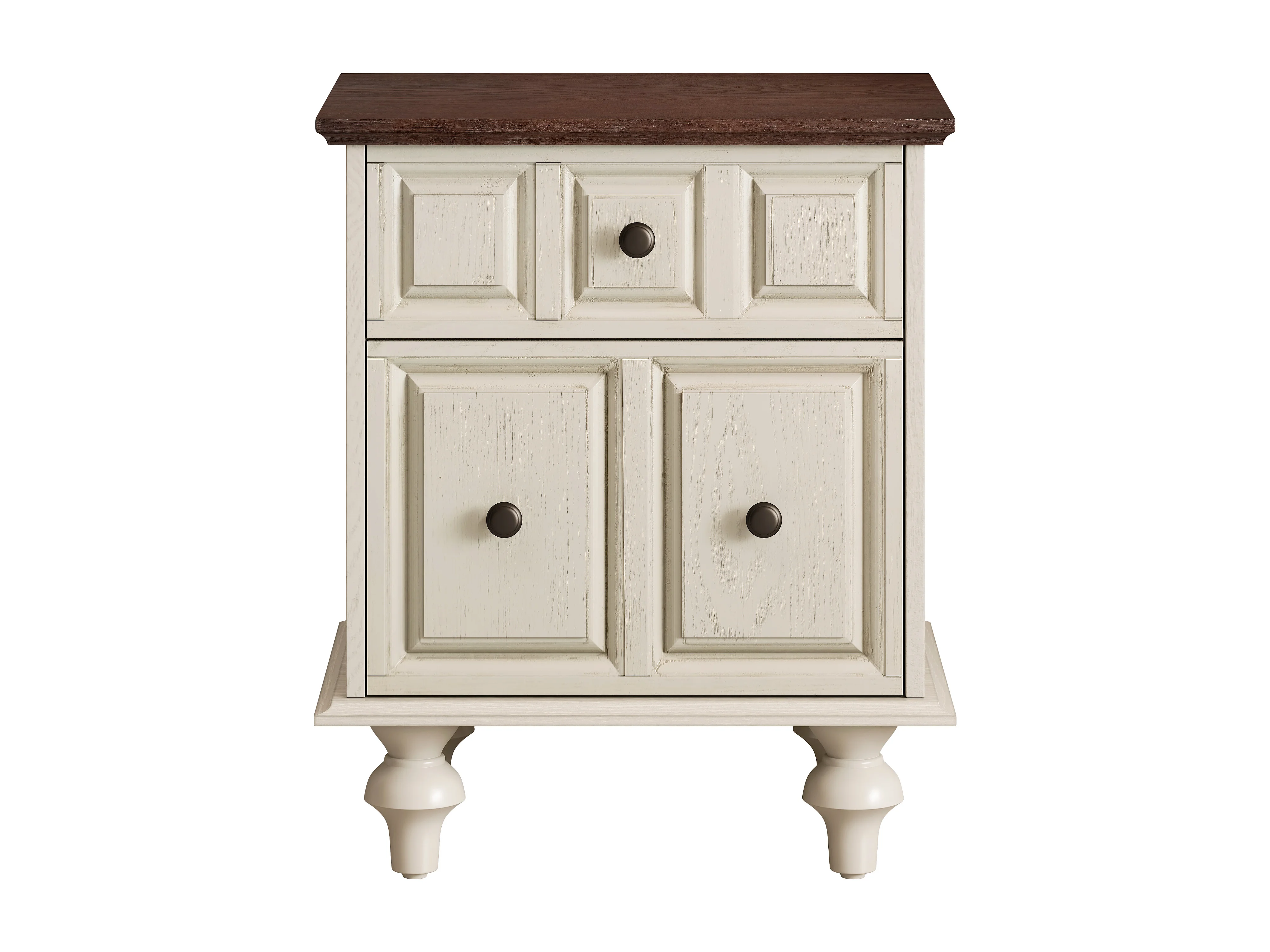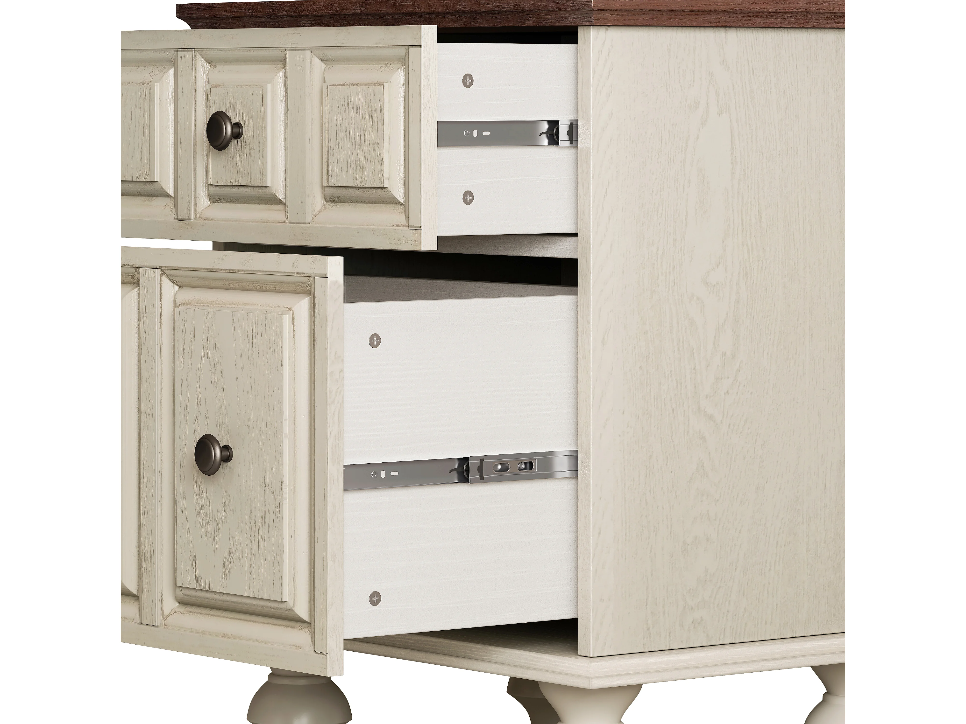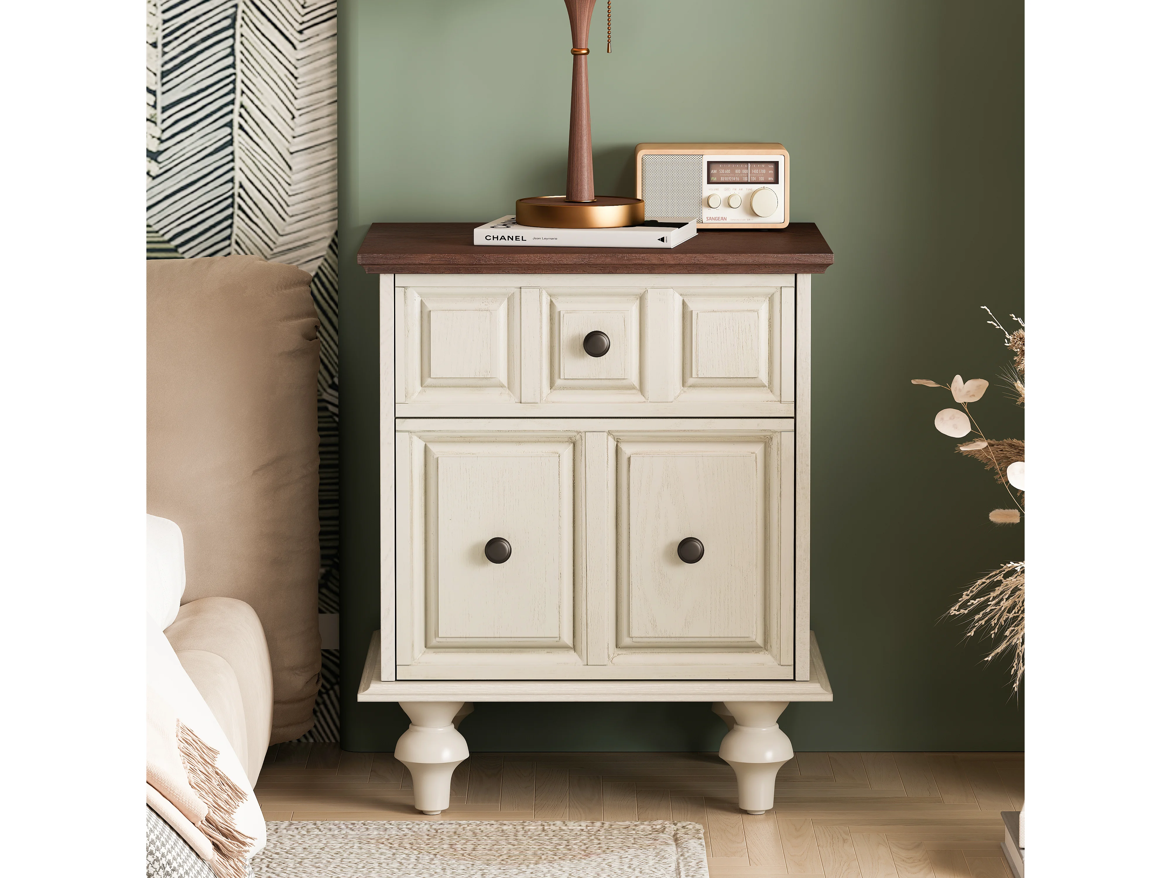 Comodino vintage con 2 cassetti, gambe in stile romano, finitura bianco anticato