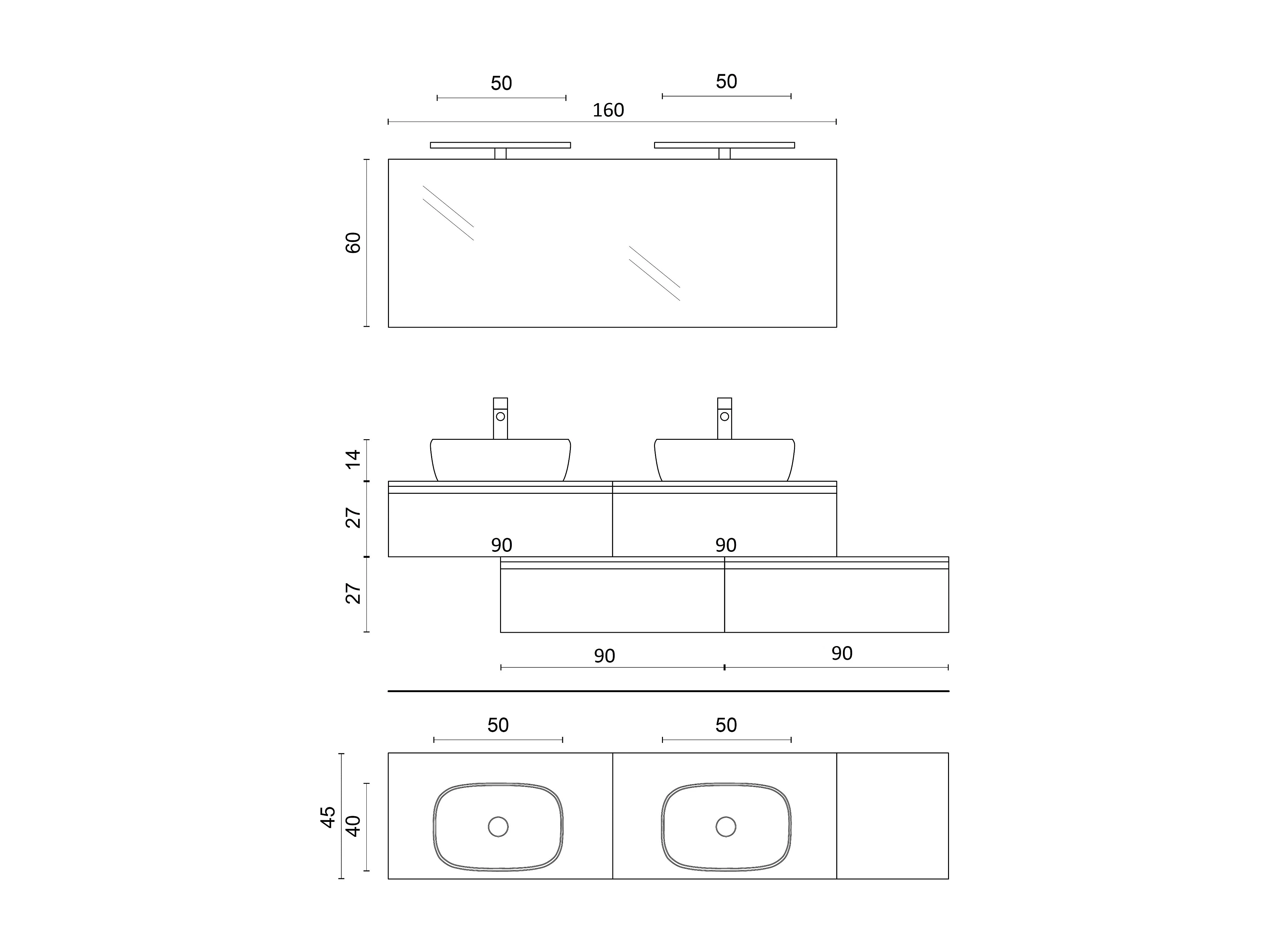 Composizione doppio lavabo 9 pezzi ASTRA avana pietra