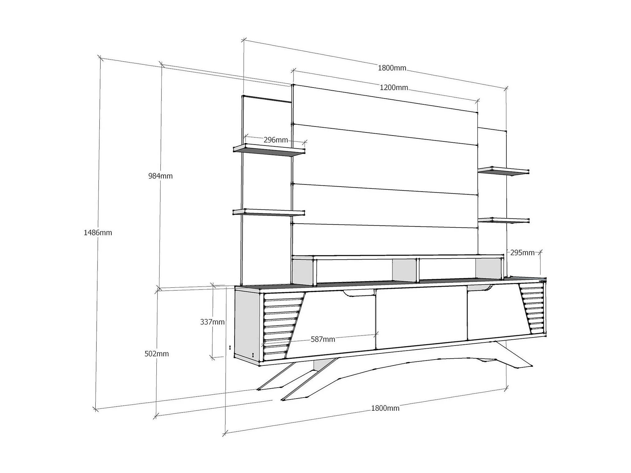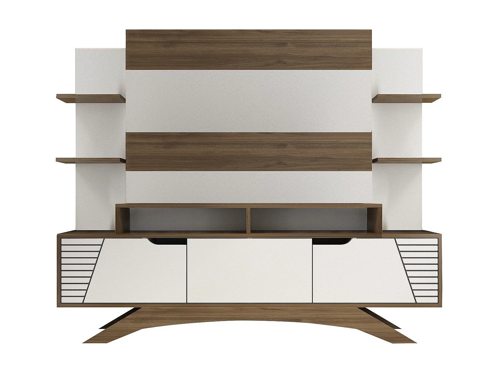 Mobile TV moderno – 180 cm x 148,6 cm x 29,5 cm – noce e bianco – melaminico